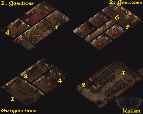 Wieder zurück, erfreut sich Mae´Var des Amuletts und befielt euch weitere Aufträge für Edwin zu erledigen, welchen ihr im 2. Obergeschoss (6) findet. Der Magier, der bereits im ersten Baldurs Gate Abenteuer mitwirkte, hat einen ähnlich simplen Auftrag für euch. Ein gewisser Rayic Gethras soll ins Jenseits geschickt werden. Sein Haus (9) befindet sich zwischen dem Harpergebäude und der Diebesgilde. Die kleinen Fledermäuse am Eingang (1) werden im ersten Obergeschoss von zwei Erdgolems (3) abgelöst. Nach ihnen steht euch einzig und allein Rayic (5) selbst im Wege.