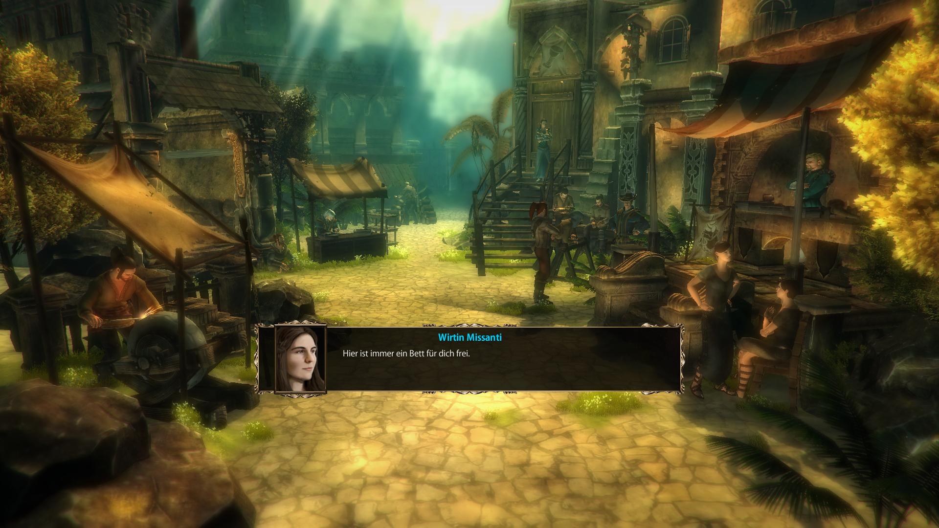 Die Erinnerung hat dich und deine neu gewonnen Freunde zu der Entscheidung geleitet Neetha aufzusuchen. Wähle die Stadt als Ziel auf der Weltkarte aus. Im Gegensatz zu vielen anderen Rollenspielen, kannst du dich in Blackguards außerhalb von Kämpfen nie als Spielfigur bewegen. Besuchte Orte wie die Stadt Neetha werden stets als ein oder zwei Standbildschirme dargestellt, auf denen du Händler, Heiler und andere Charaktere für ein Gespräch anklicken kannst.