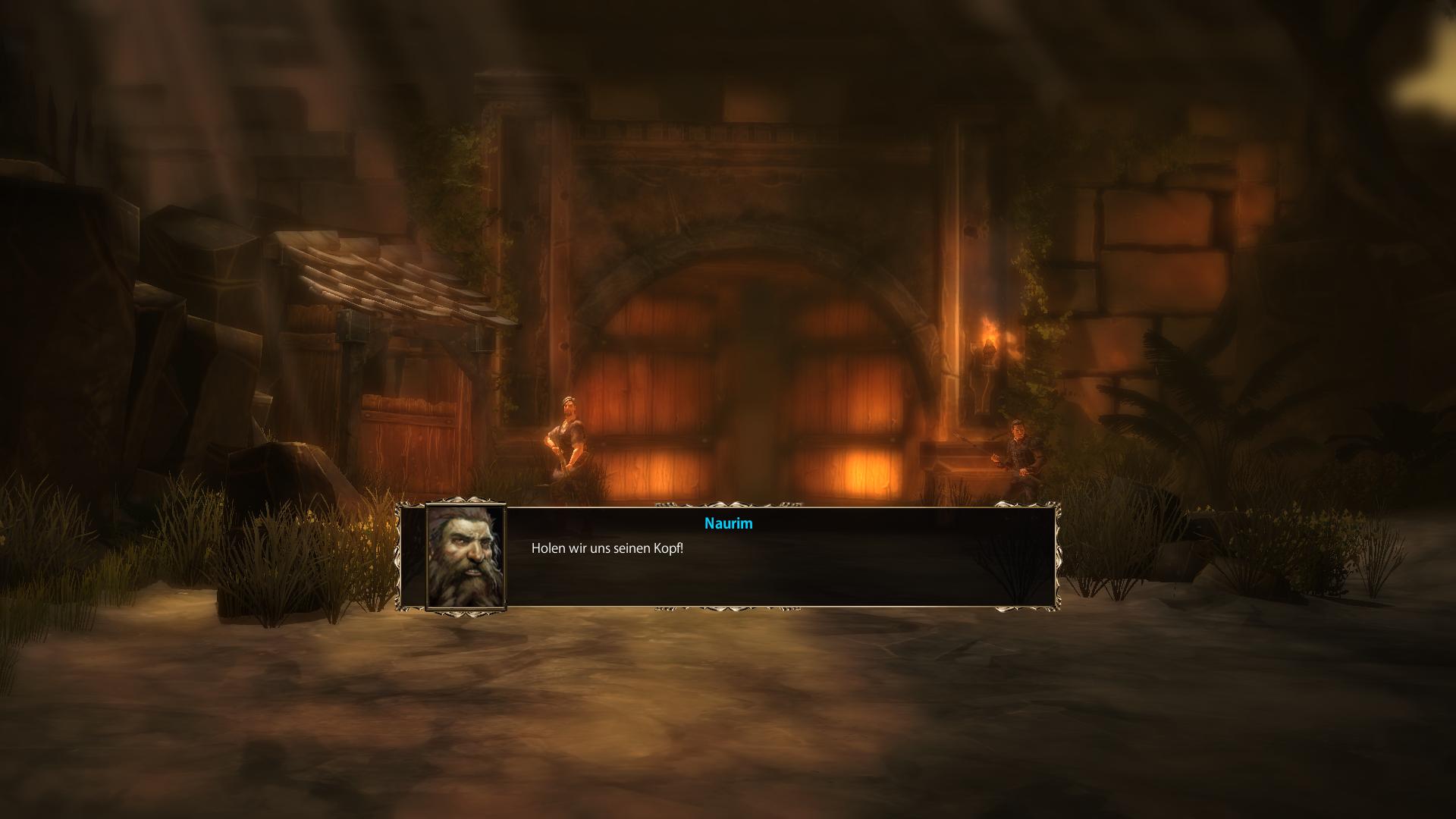 Im südlich gelegenen Lagerhaus sind nur zwei Gefolgsleute, die quasi keine Herausforderung sind. Sobald du sie ausgeschaltet hast, bittet der eingesperrte Goblin darum befreit zu werden. Wenn du dem nachkommst, startet er die "Der größte Schatz von Suulak" Nebenquest, in dem er die einen Knochen gibt, er angeblich ein Schlüssel ist.
