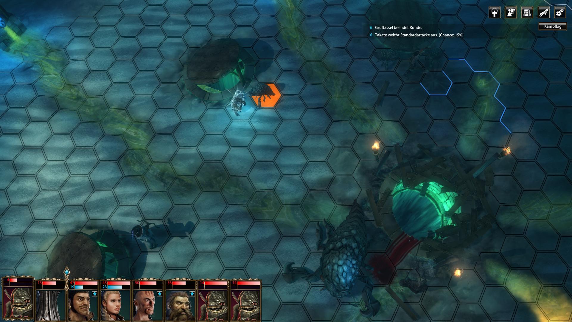Das wird einer der schrecklichsten Kämpfe des Spiels. Niam ist noch immer benebelt und wird in Runde zwei unweigerlich von der Asselkönigin gefressen. Wie bei allen Kämpfen gegen Gruftasseln musst du alle Löcher verschließen, aus denen Gruftasseln kommen können und gleichzeitig Aurelia verteidigen. Was bedeutet, die Asseln dürfen nicht in ihre Nähe kommen, da sie sowohl angreifen als auch explodieren können. Versuche mit Naurim und einem weiteren Charakter die Gruftasseln sowie die Asselkönigin etwas oberhalb von Aurelia zu binden und mit Takate herum zu gehen und die Löcher zu schließen. Eine der Asseln, die sich dabei um Takate sammeln, sollte nach ein paar Runden immer explodieren und ein zwei weitere mitreißen. Wodurch du dich fasst ausschließlich aufs Löcher schließen konzentrieren kannst und fasst nicht mit ihm kämpfen musst.