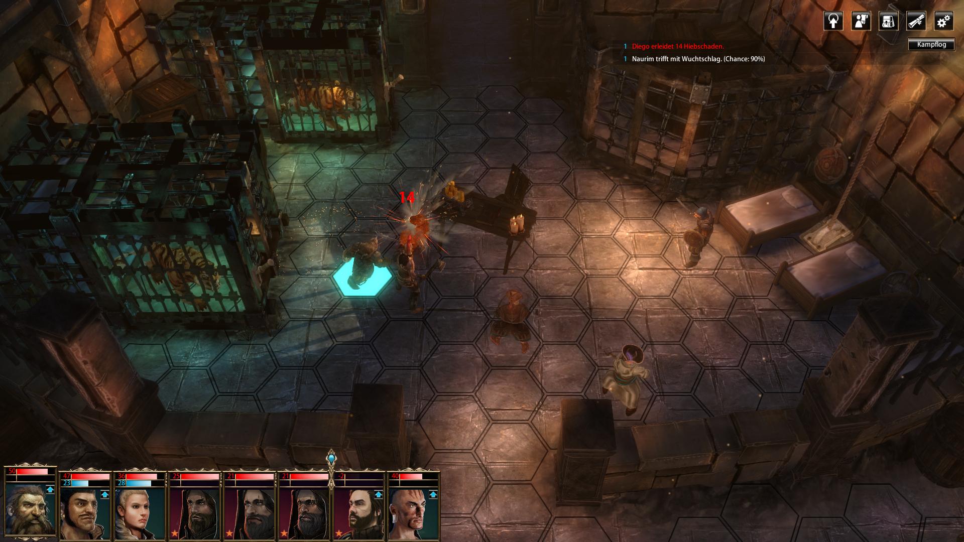 Der allmächtige Marwan selbst gratuliert dir zum Sieg und verweist dich auf die Siegeskammer. Aurelia trägt immer noch die Maske, weshalb Zungenküsse mit der Jungfrau schon mal ausgeschlossen sind. Das geht natürlich nicht. Du musst einen Weg finden die Schandmaske zu lüften. Laut Aurelia hat Diego Monterey den Schlüssel dazu. Such ihn in seinen Gemächern auf. Er gibt den Schlüssel selbstverständlich nicht freiwillig heraus. Du musst ihn und drei seiner Sklavenjäger besiegen. Konzentriere deine Angriffe zunächst auf ihn und blockiere den unteren Eingang mit einem Charakter oder einer Arkanen Wand. Dann sollte Diego hoffentlich nicht dazu kommen, seine Tiger frei zu lassen. Unter der Beute befindet sich u.a. ein Stück Schwarzes-Metall, was die Korspieß Nebenquest startet.