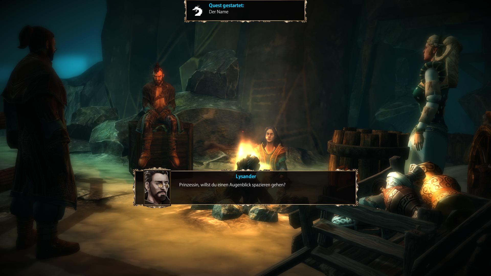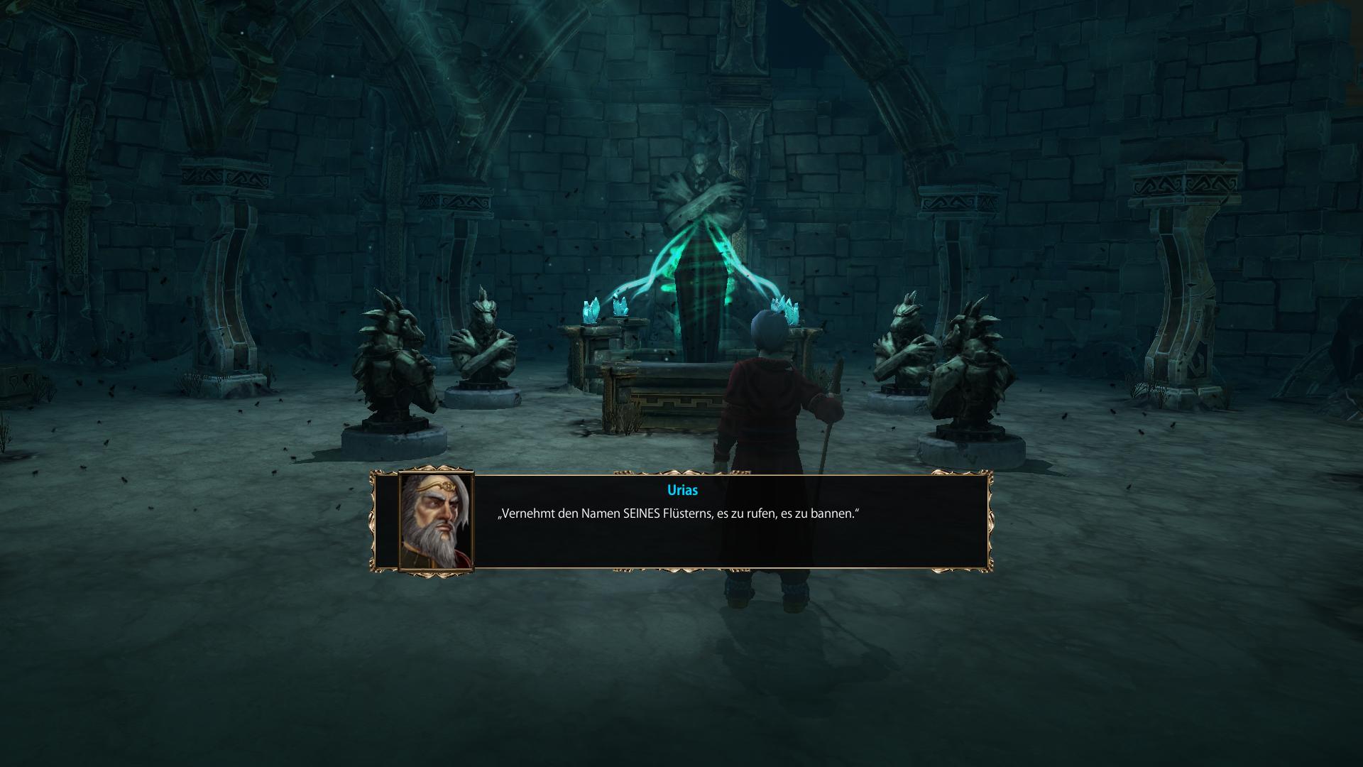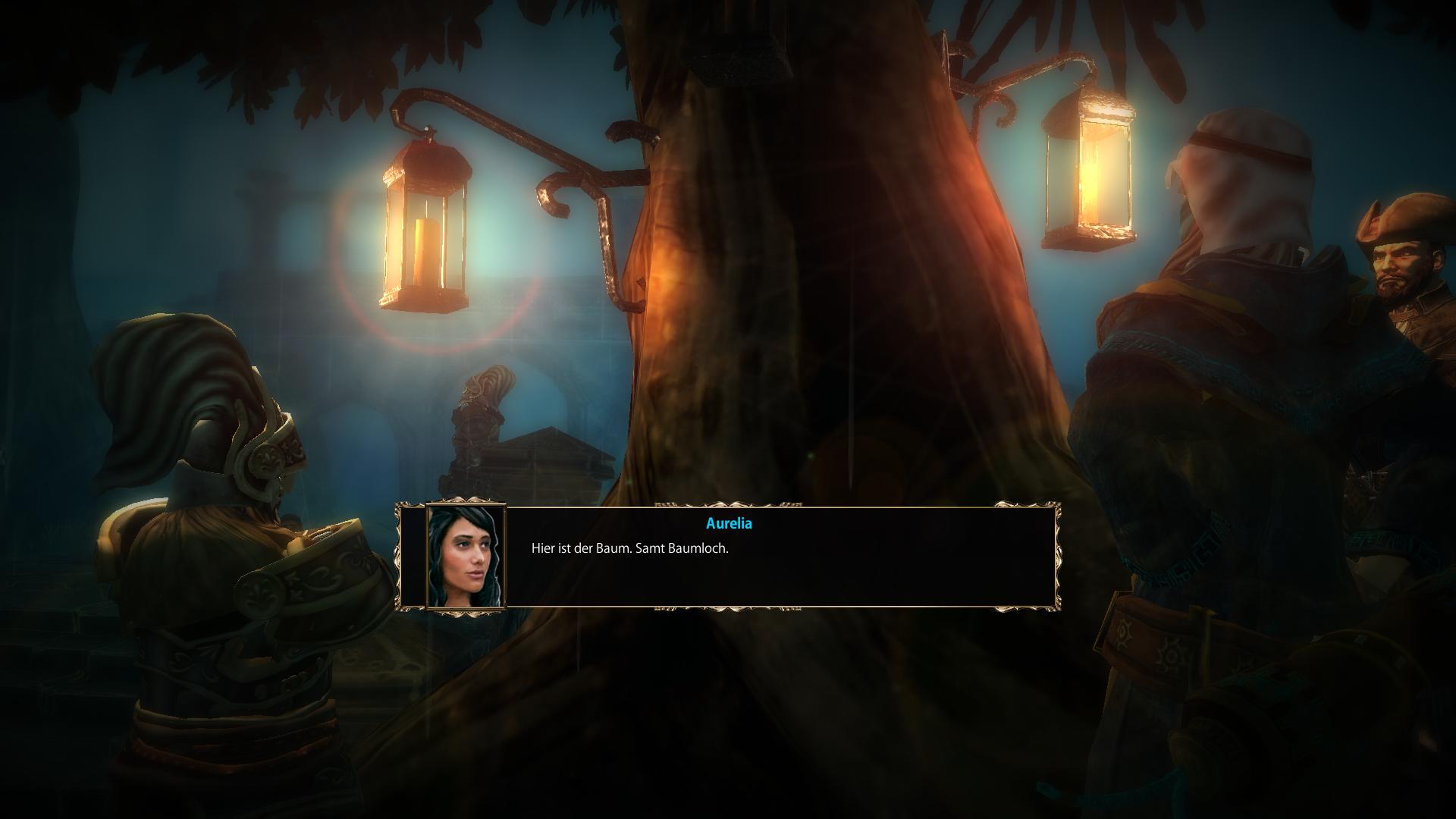 Aurelia versetzt dich in deiner Erinnerung tatsächlich zurück in der Zeit. Prinzessin Elanor lebt noch und ihr sitzt zu dritt am Lagerfeuer. Lysander gesellt sich hinzu und fordert Elanor zu einem Spaziergang auf. Lysander ist aufgeregt und will euch beide sofort zum Abstieg in ein Grab überreden. Er erklärt euch die Lage. In dem Grab soll der Schlüssel zu allem abgrundtief bösem liegen. Womit er vermutlich das Bannwort meint. Offenbar wissen alle mehr als du. Aber als du dich endlich dazu beschließt aufzubrechen, kommt Graf Urias zu euch. Urias hat das gleiche wie ihr vor, also folgt ihr ihm die Treppen hinab. Vor der Pforte zur großen Grabkammer werdet ihr angegriffen.