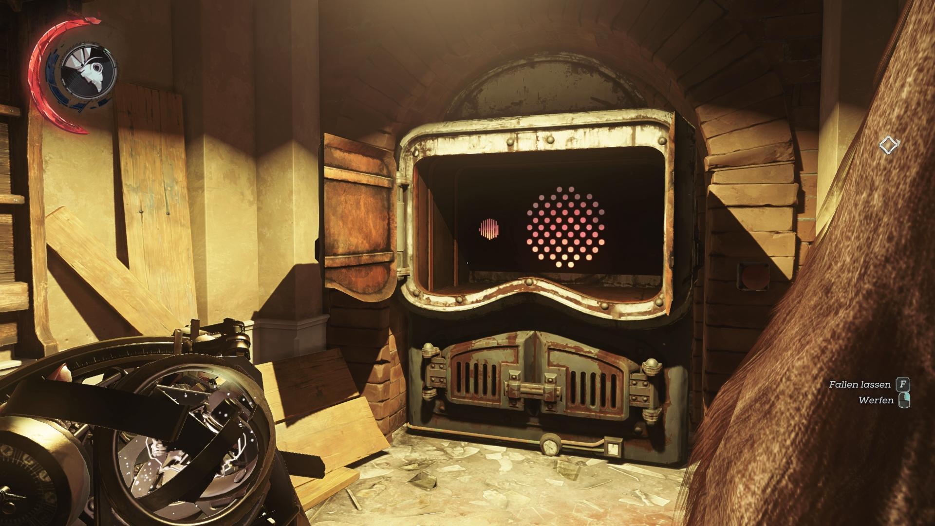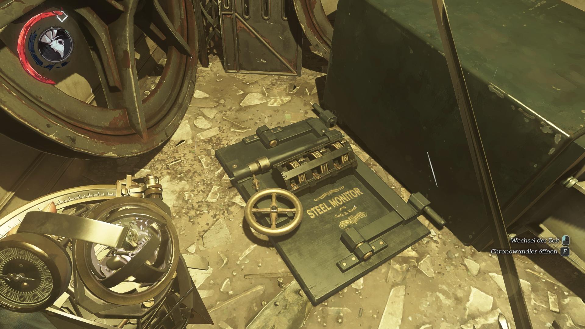 Safe-Kombination: Öffnet den Ofen, werft den Hunde-Leichnam hinein, schließt die Tür und drückt den roten Knopf daneben. Sobald der Kadaver verbrannt ist, könnt ihr in die Gegenwart wechseln. Mit dem fehlenden Hund haben sich auch die Blutfliegen aufgelöst. Seht euch die Kombination an der abgefallenen Tresortür an, wechselt in die Vergangenheit und stellt sie am intakten Safe ein, um sie zu öffnen.