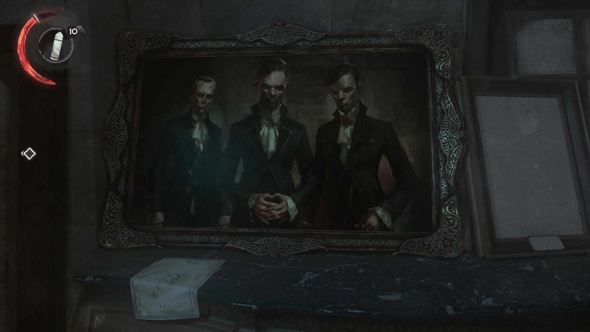 Fundort:Auf dem Gang in Emilys Versteck während des "Entkomme aus dem Dunwall Tower" Quest-Ziels. Wenn ihr mit dem Königlichen Siegelring den Geheimraum geöffnet und darüber in den Straßen von Dunwall Bezirk gewechselt seid, steht auf der rechten Seite des Ganges dieses Gemälde. Anschließend könnt ihr über die Dächer auf die Straßen hinab klettern.