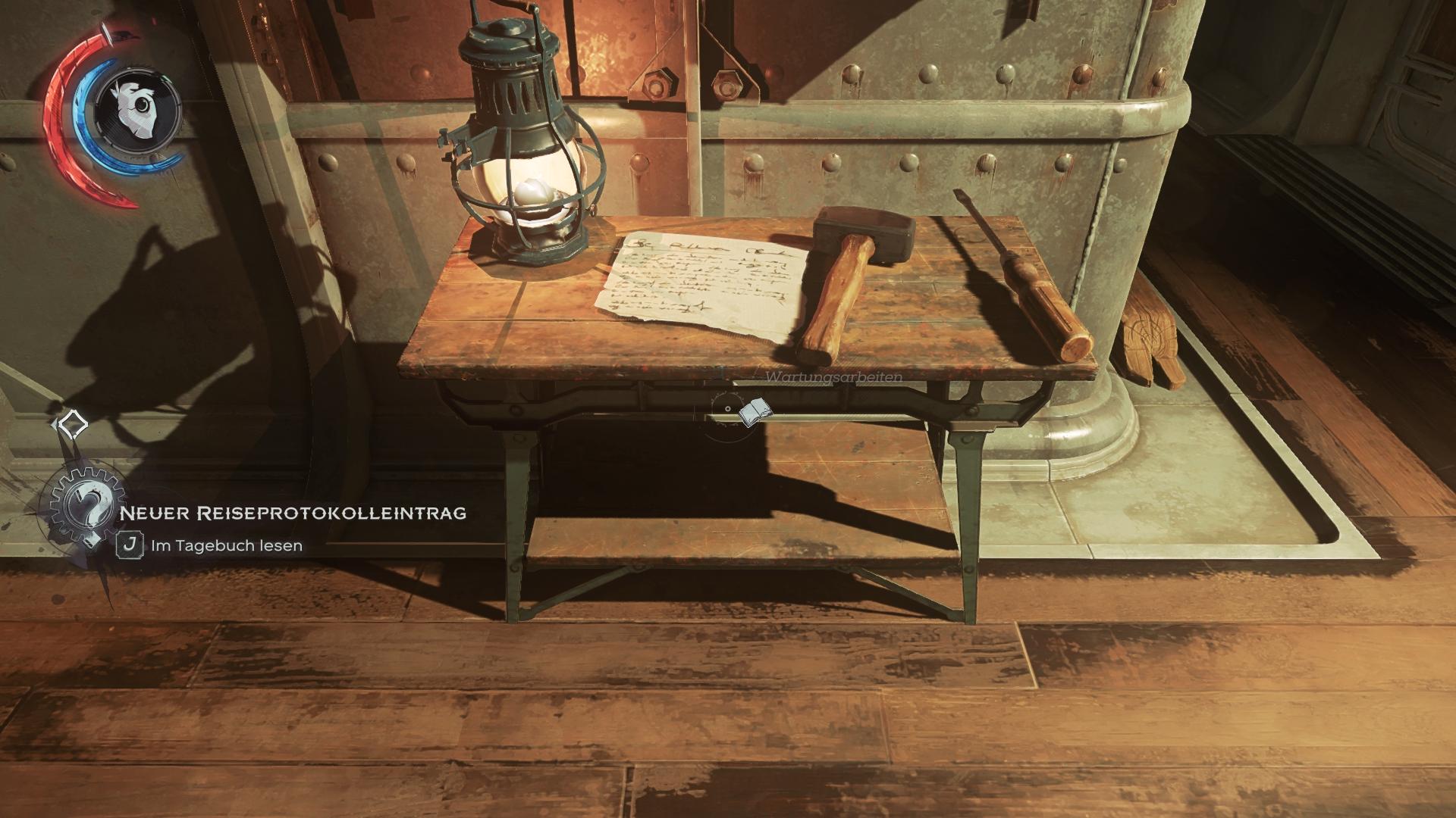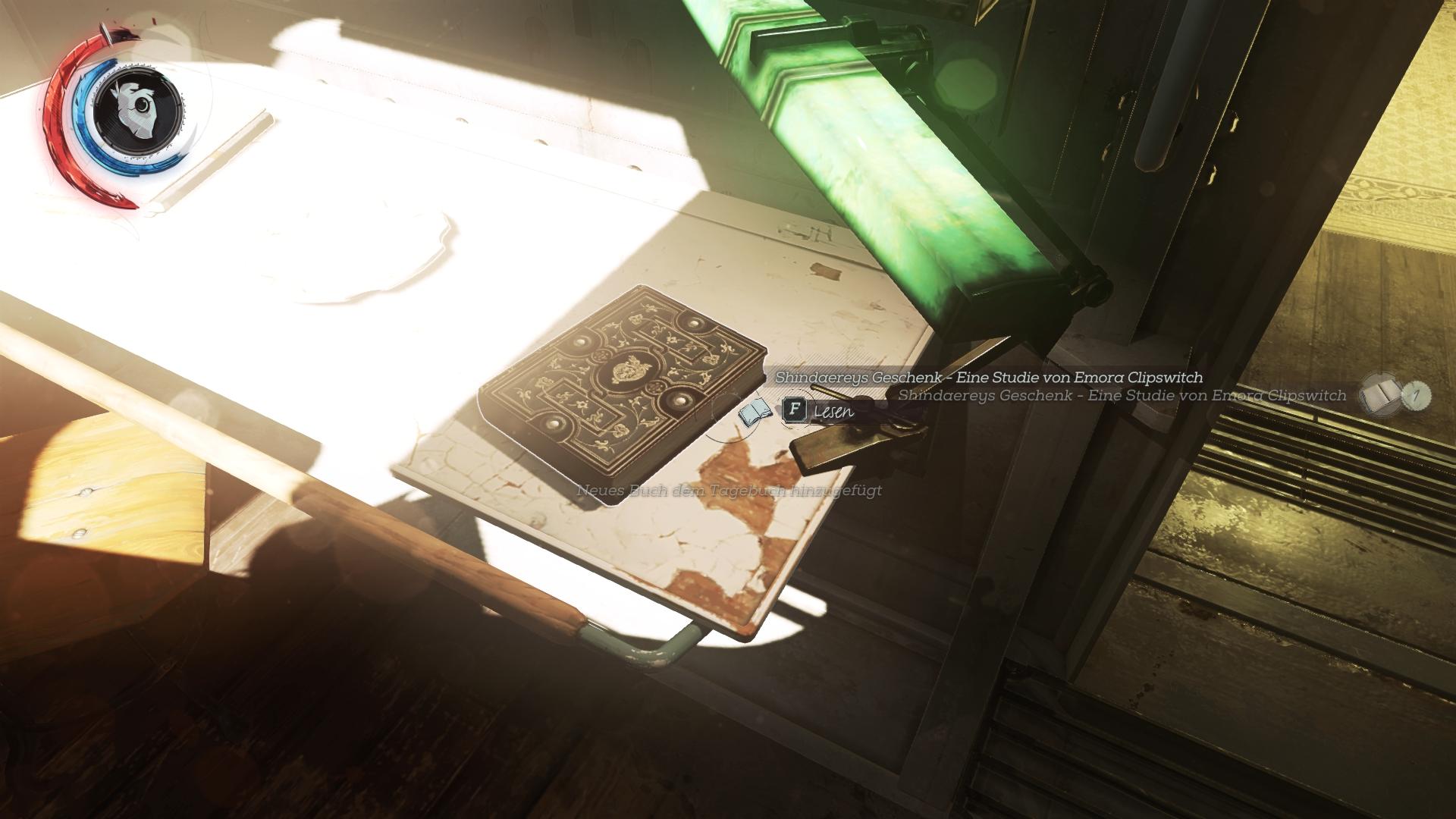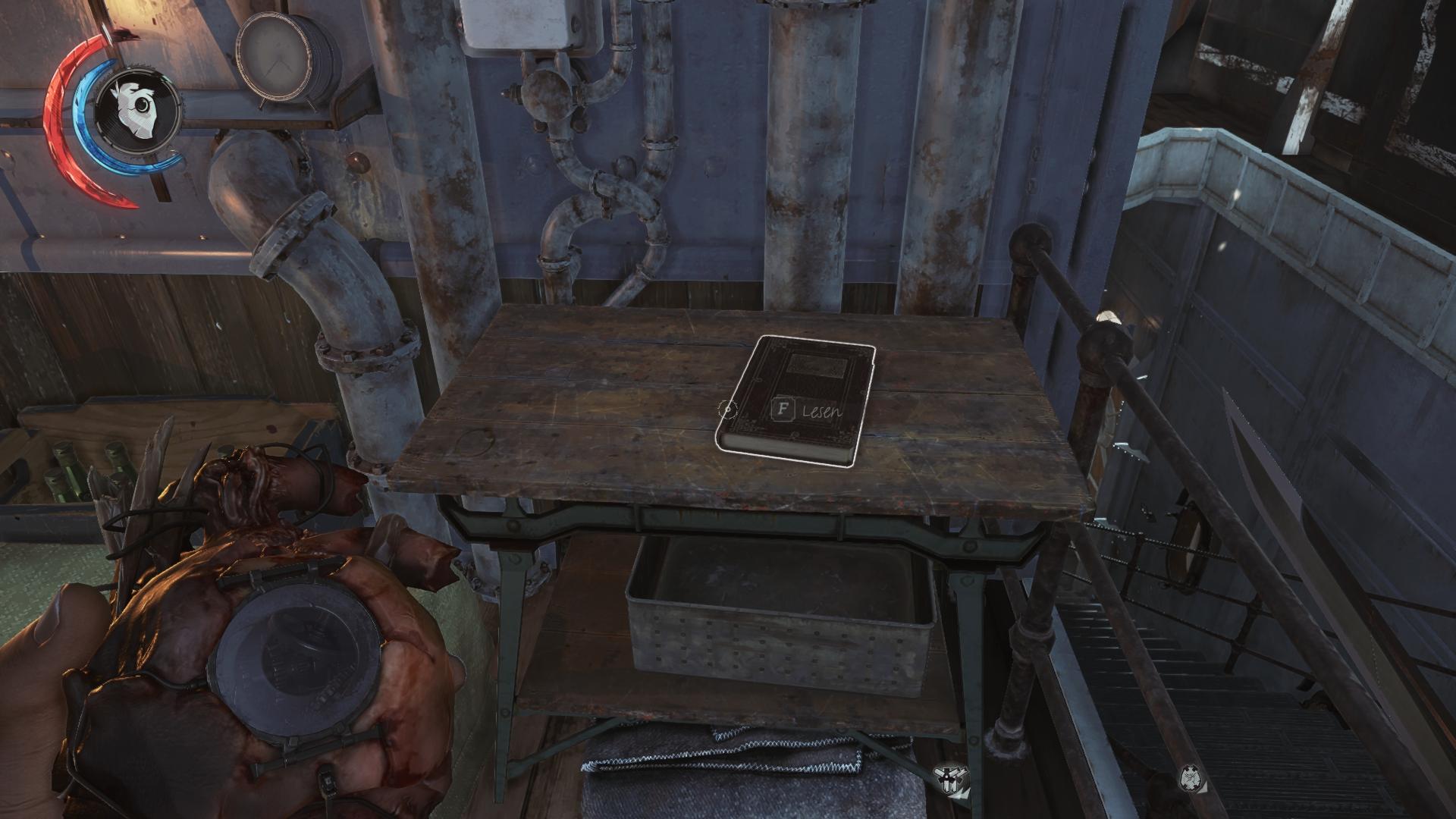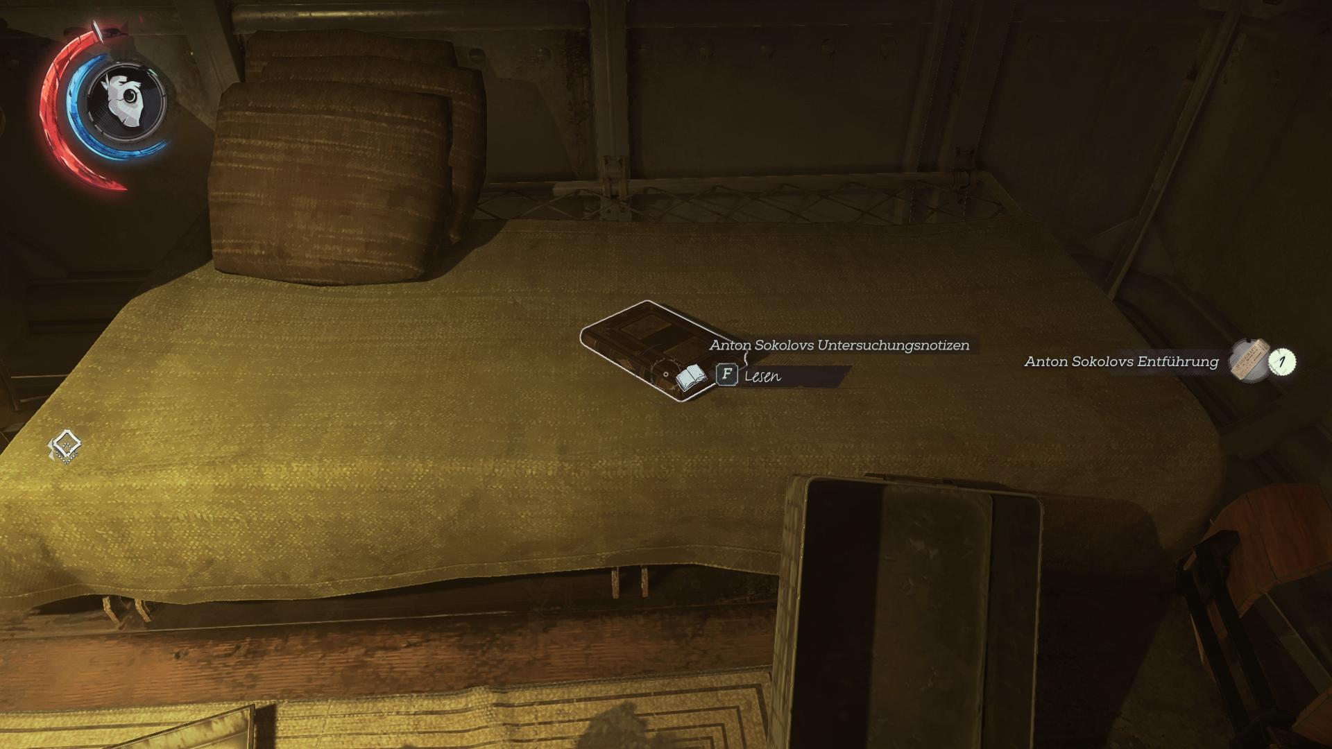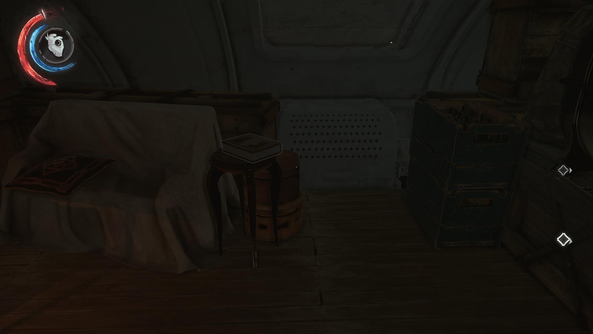 - Fundort:An der Innenseite der Tür von Corvos/Emilys Kabine, neben der Armbrust. Kann man nicht verpassen.
