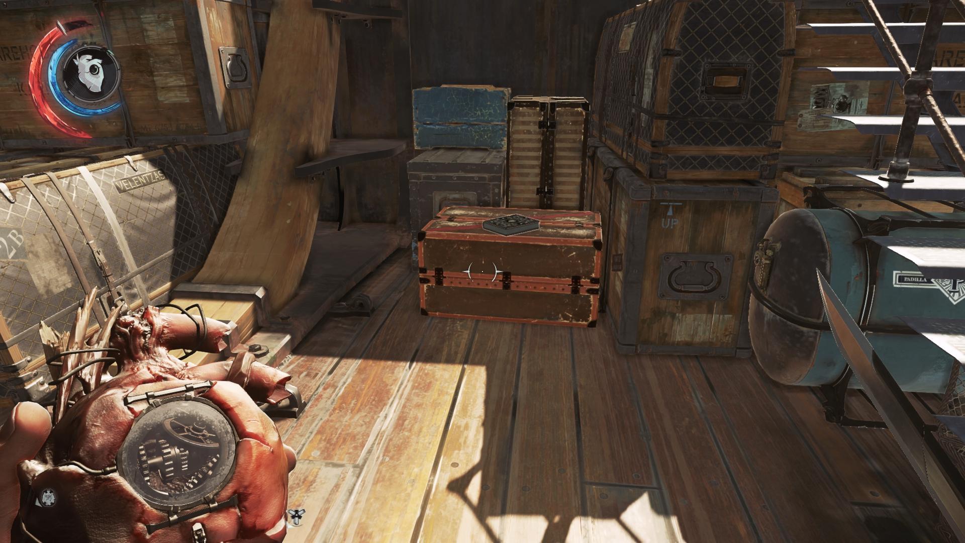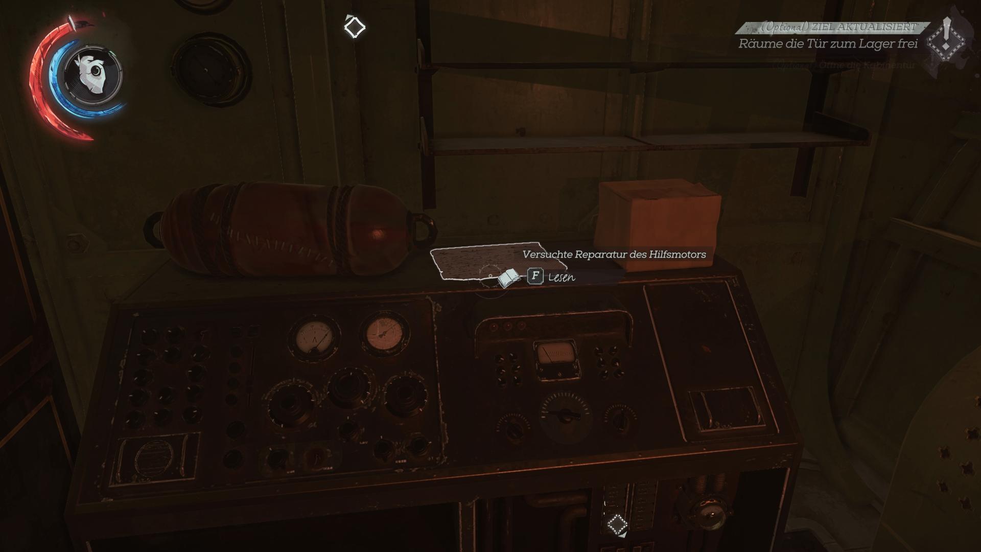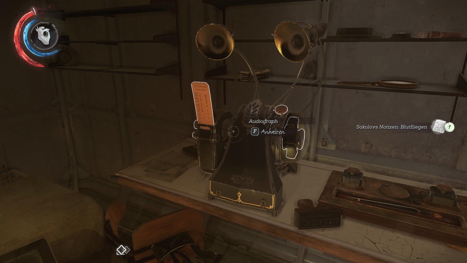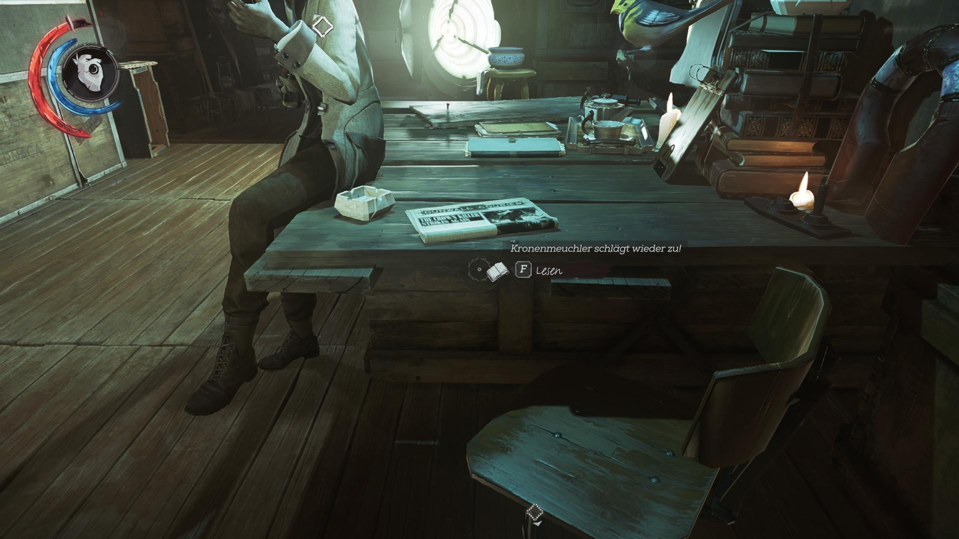 - Fundort:An der Innenseite der Tür von Corvos/Emilys Kabine, neben der Armbrust. Kann man nicht verpassen.