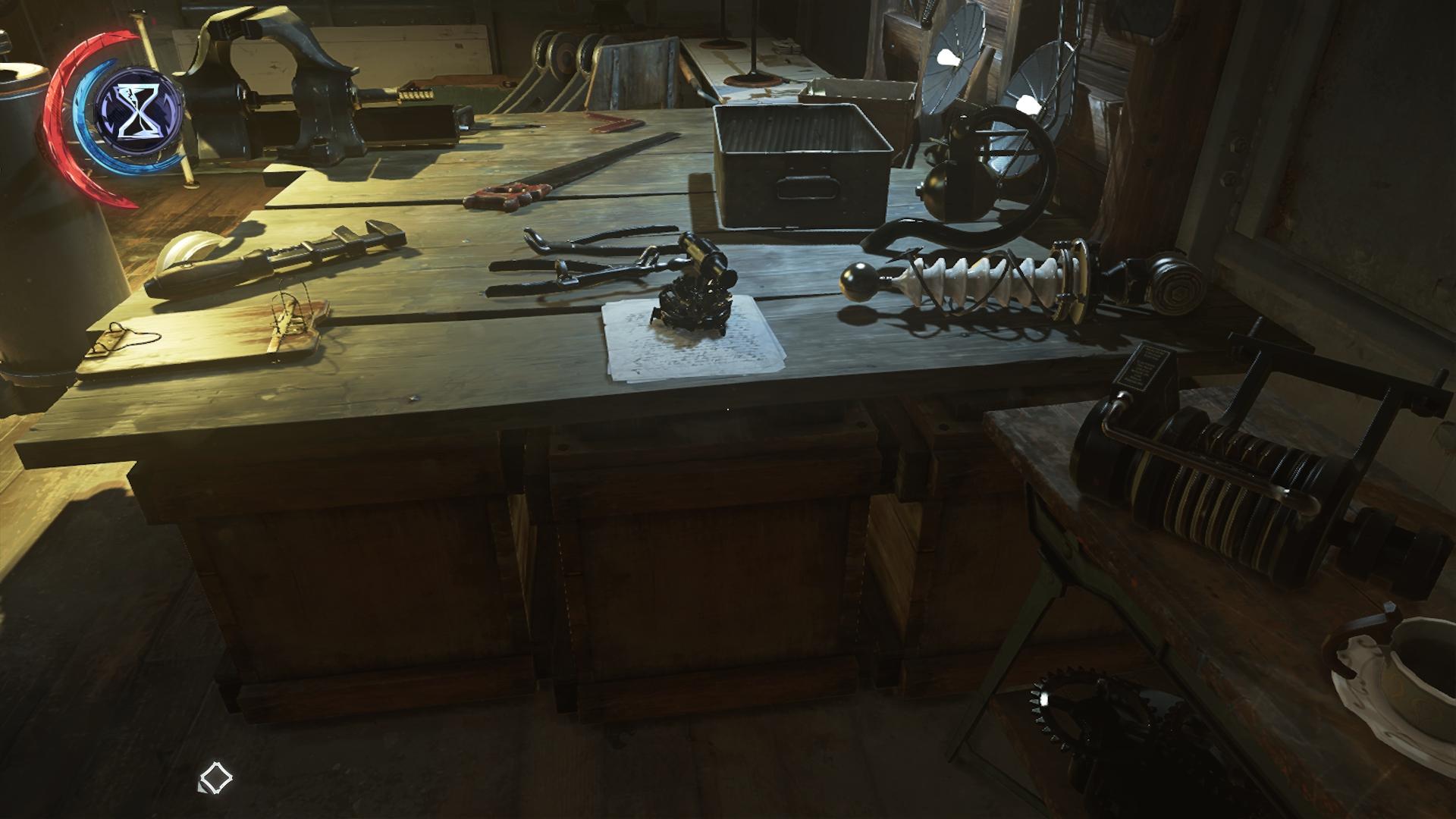 - Fundort:Auf dem Werkstatttisch. Geht durch den Besprechungsraum, an Anton Sokolov vorbei. Die Blätter liegen unter einer Mine an der euch zugewandten Seite des Tisches.