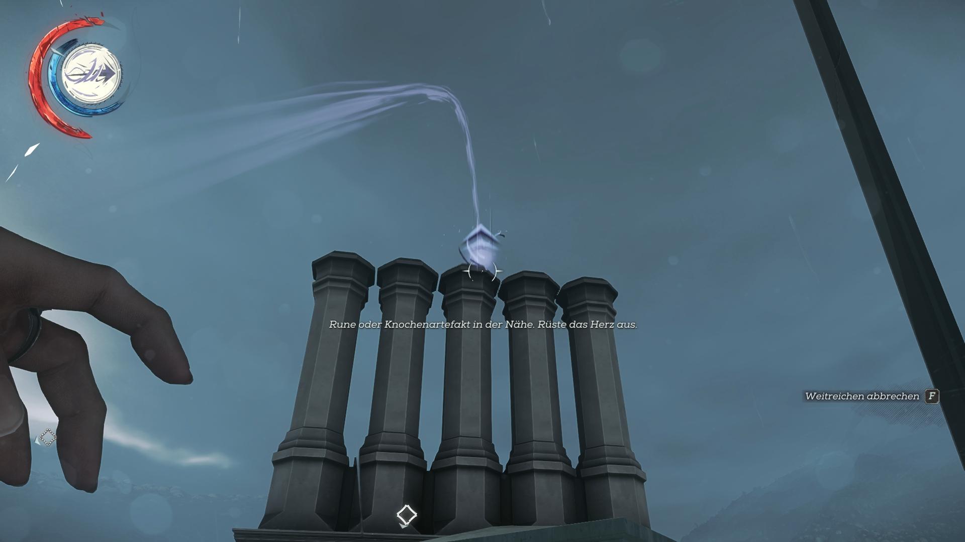 Fundort:Das erste Knochenartefakt der dritten Mission findet sich direkt unterhalb des Startpunktes also der Bahnstation. Dreht euch zum Meer und springt an der Stelle, wo das Geländer weggebrochen ist, auf die Felsen oder das Rohr runter, um unter den Holzboden klettern zu können.