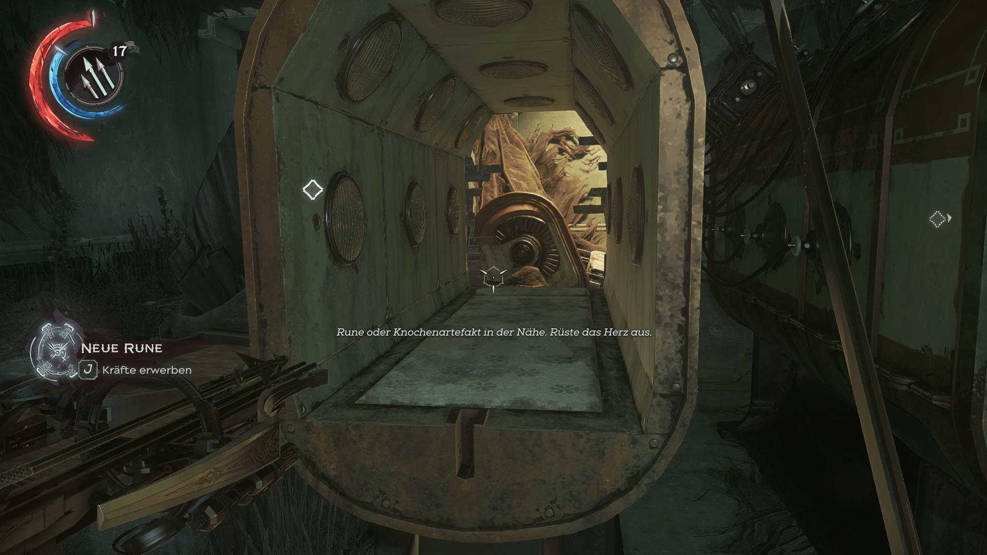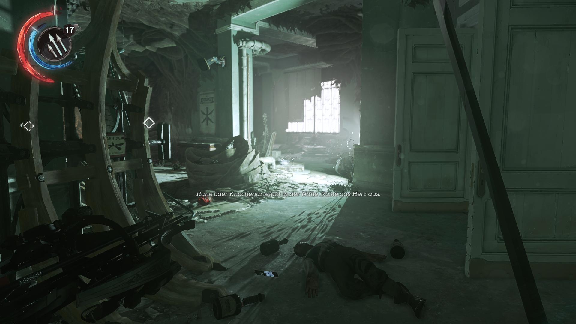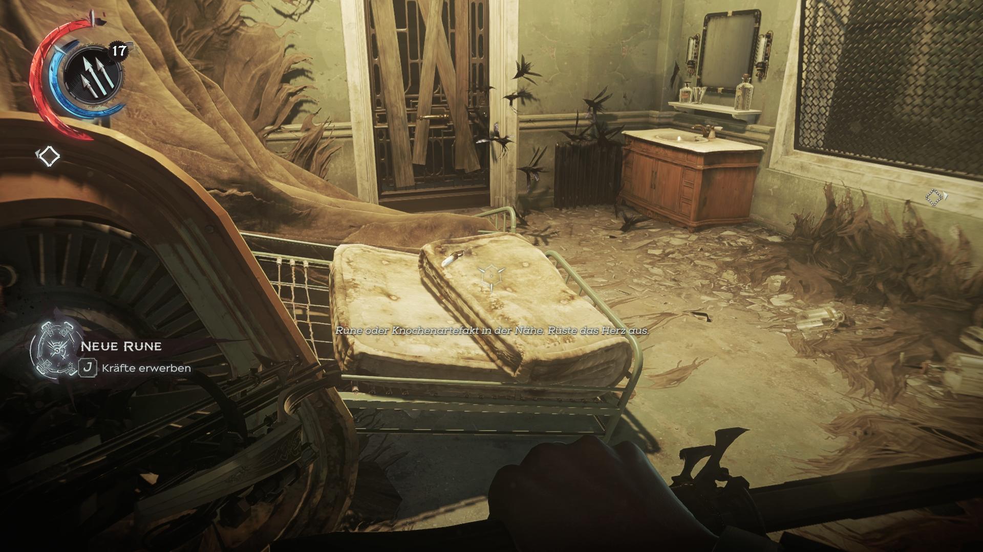 Fundort:Wie die vorangegangene Rune ist auch dieses Knochenartefakt im Rekuperation-Flügel des 3. Stockwerks zu finden. Schließt die Tür also mit dem Schlüssel aus Hypatias Büro auf, geht nach dem Durchschreiten der Tür links rum und kriecht durch die linke de drei Kammern in den zentralen Raum.