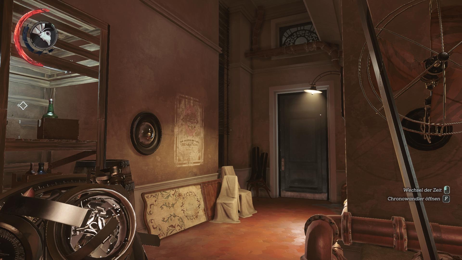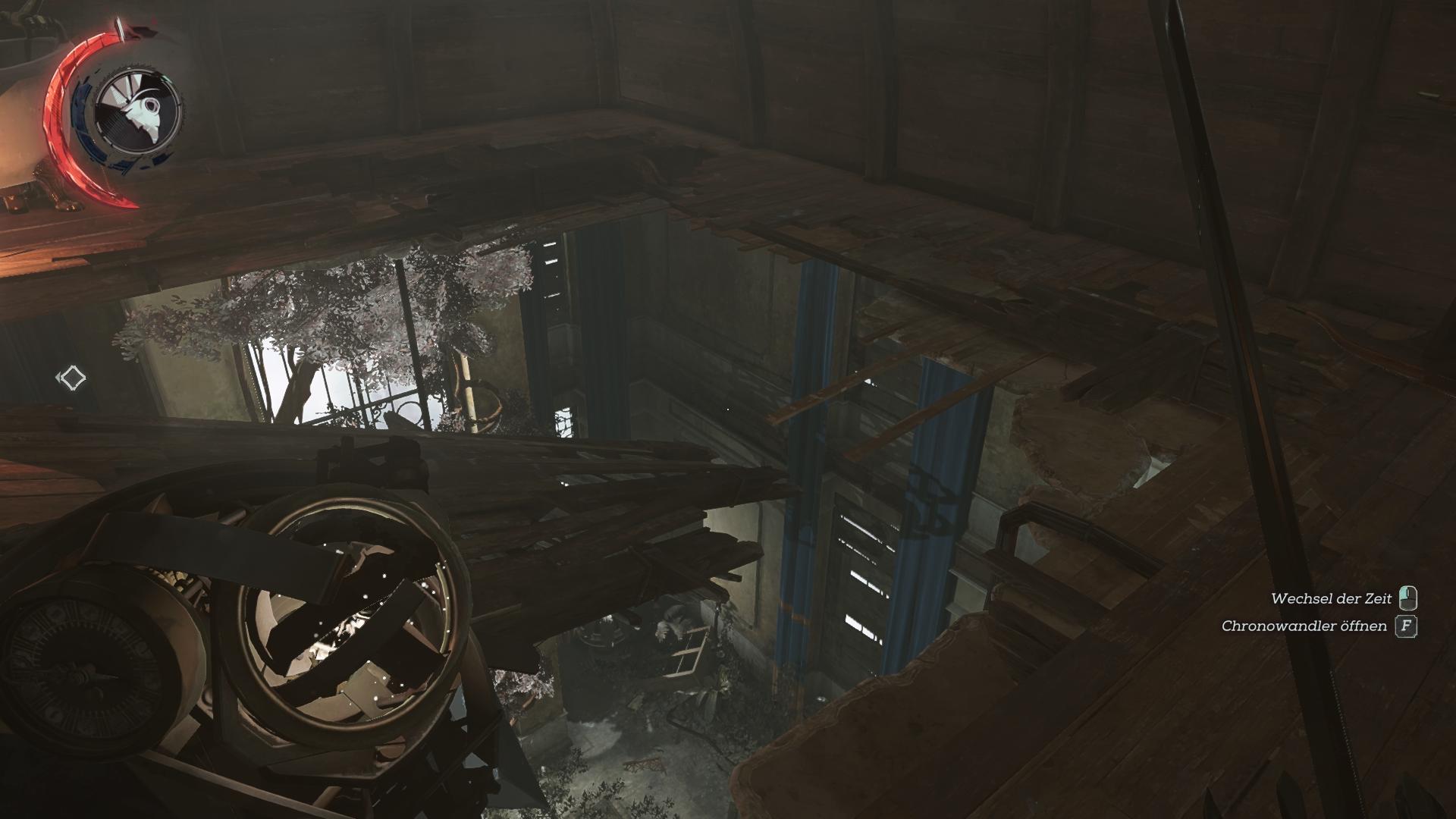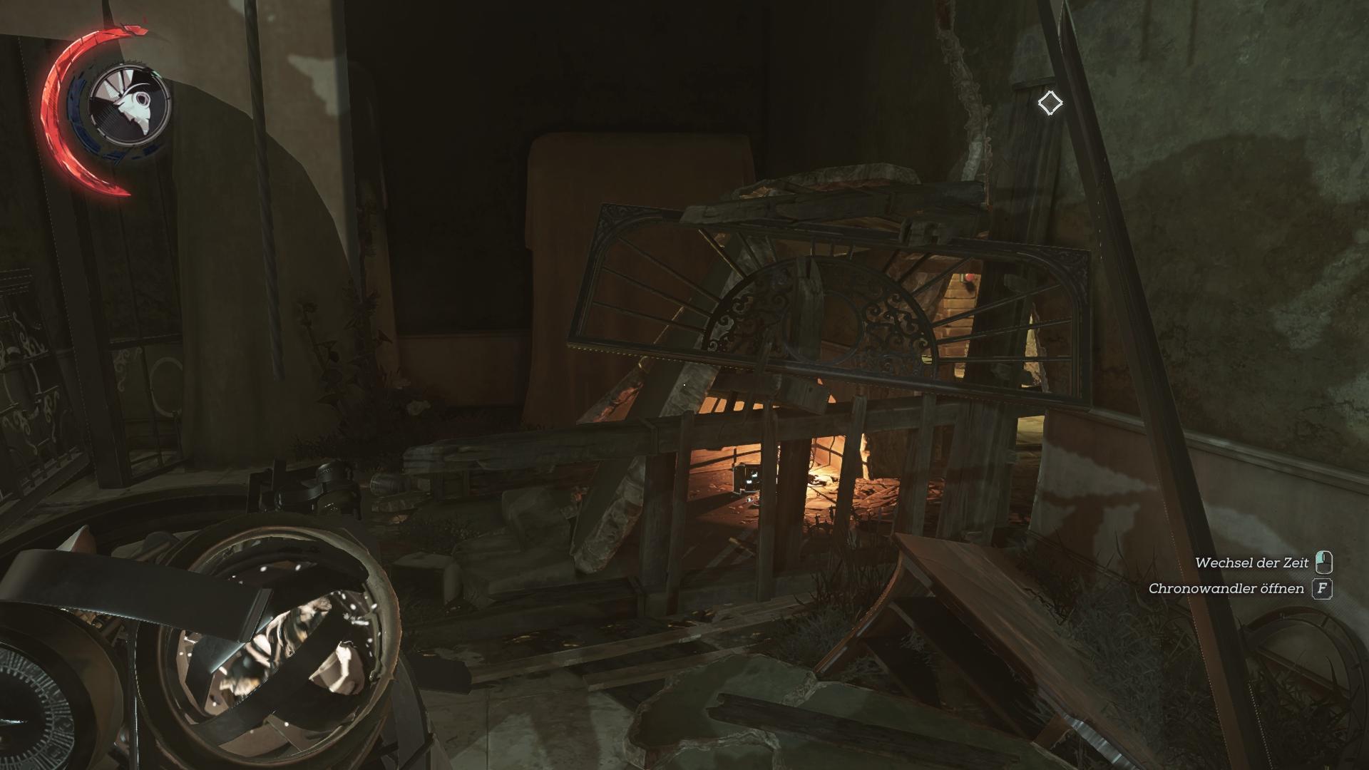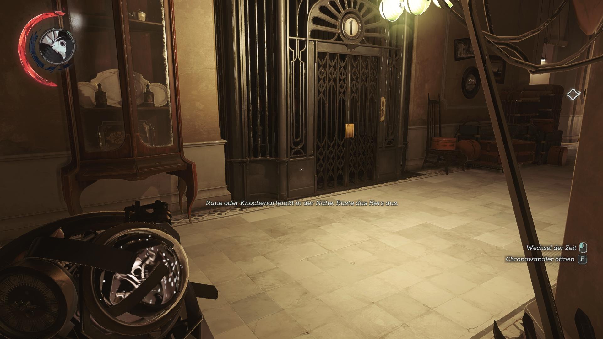 Betretet den Fahrstuhl in der Vergangenheit im Erdgeschoss und wechselt dann in die Gegenwart. Das lässt euch auf das Knochenartefakt fallen. Anschließend könnt ihr wieder in die Vergangenheit wechseln, um aus dem Fahrstuhl zu entkommen.