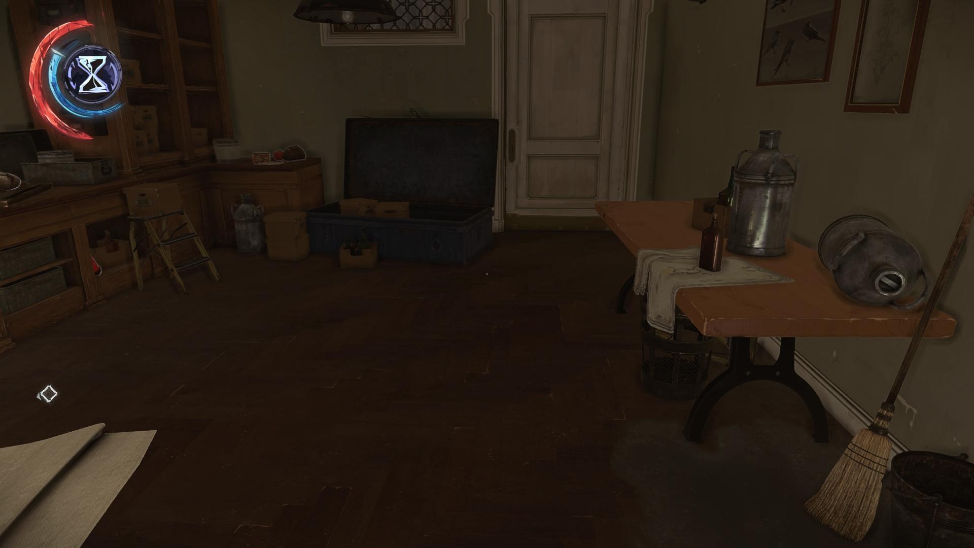 Ohne Generalschlüssel geht ihr in der Vergangenheit rechts zur Küche. Klettert von dort aus in der Gegenwart in die Speisekammer und durch das kaputte Fenster auf den Hof. Dann geht ihr durch die Tür ebenfalls in die Große Halle.