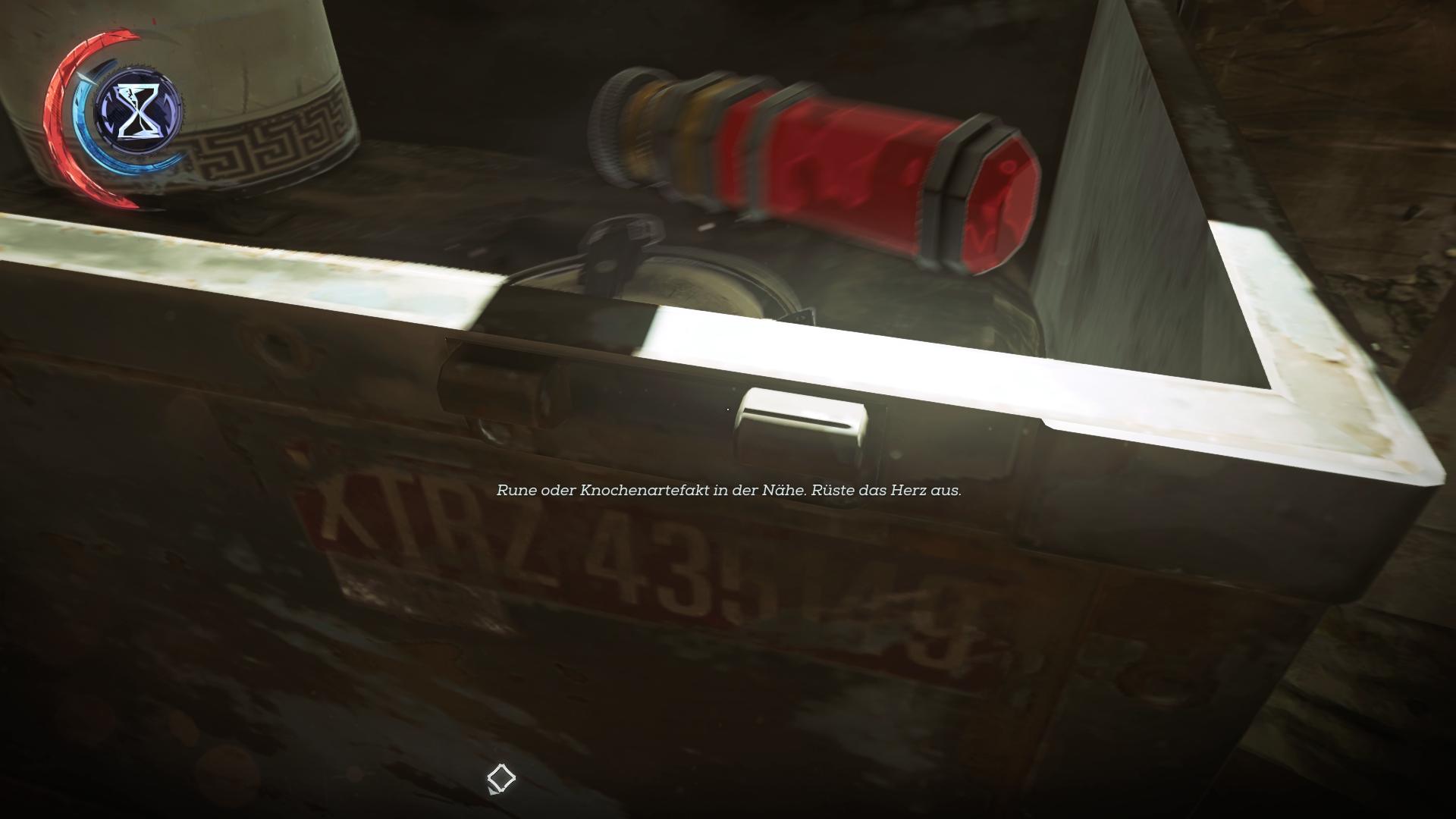 Fundort:An dieses Knochenartefakt zu gelangen, ist tatsächlich etwas aufwändiger. Es befindet sich in dem Raum neben dem Fahrstuhl, dessen Tür sich in keiner Zeit öffnen lässt. Holt euch am besten den Generalschlüssel, um vom Eingang aus geradeaus durch die Tür und dann durch die Glastür links neben dem Fahrstuhl gehen zu können. In der Vergangenheit steht dort auf der rechten Seite ein Schreibtisch. Kriecht unter diesen drunter und springt dann in die Gegenwart. Das bringt euch unter den Geröllhaufen und ihr könnt in den Heizungsraum kriechen.