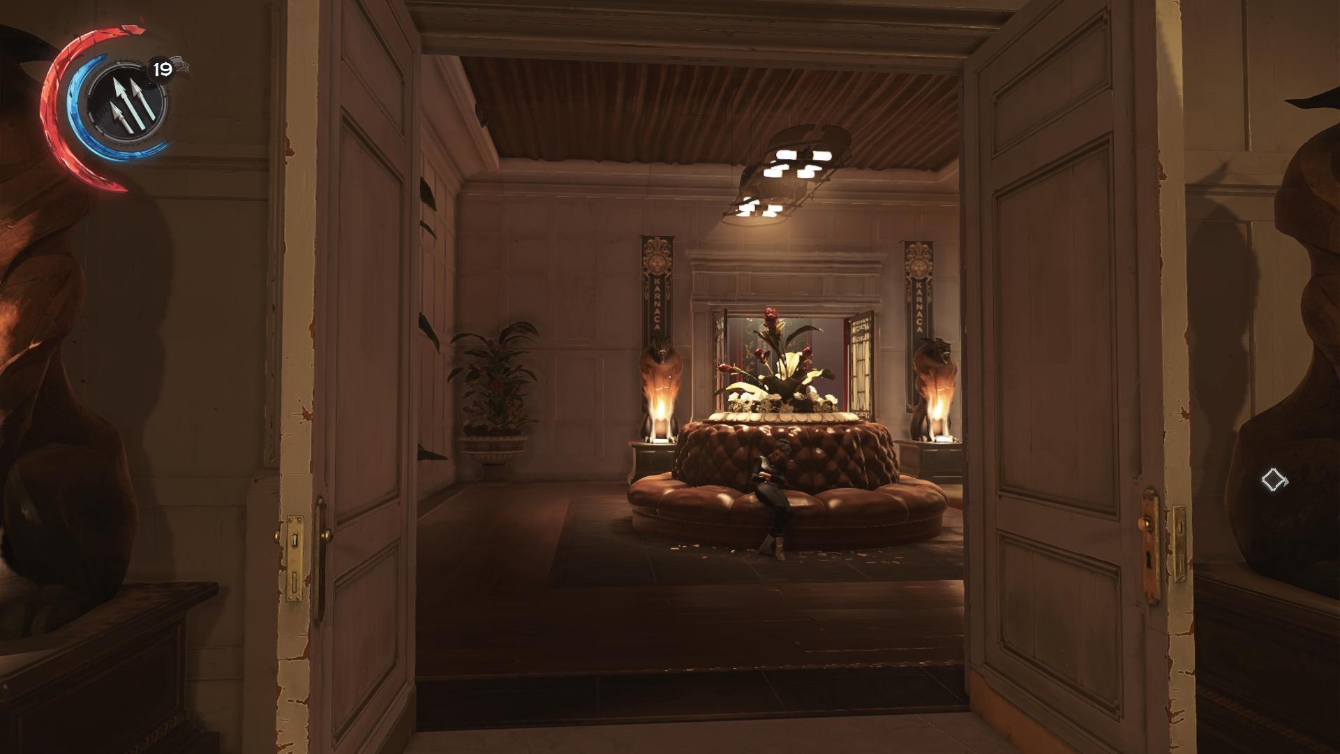 Fundort:Der Geheimraum des Herzogs besitzt erstaunlicherweise sogar zwei Eingänge. Ihr könnt dort hinein gelangen, indem ihr die zweite Tür des Tresorraums von Innen öffnet, wenn ihr am Ende der Mission Delilahs Bildnis plündert, oder bereits vom Eingang des Großpalasts dort hin gelangen. Geht vom Esszimmer aus die Treppe in den Keller runter und in die Lagerraum. Die Sackgasse wird von zwei Gardisten bewacht. Grund genug, den Raum genauer zu untersuchen. Stellt euch vor die Holzwand ohne Regal und dreht euch nach links. Dort ist auf Augenhöhe ein kleiner runder Knopf. Drückt ihr diesen, öffnet sich die Geheimtür und ihr gelangt zum schwarzen Knochenartefakt (Black Bonecharm).