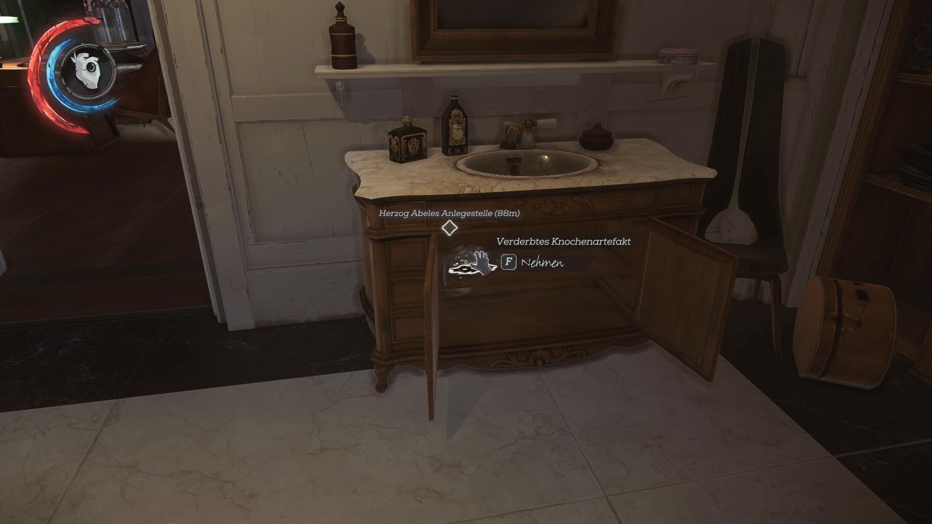 Fundort:Das Knochenartefakt ist im Badezimmer des 3. Stockwerks versteckt. Geht vom Esszimmer aus links in den Fahrstuhl und drück auf Etage 3. Geht nach links aus dem Lift raus und in einer Art 360 Grad Kurve durch die verschiedenen Zimmer. Das Bad ist das letzte. Öffnet die Kommode und ihr habt das Artefakt.