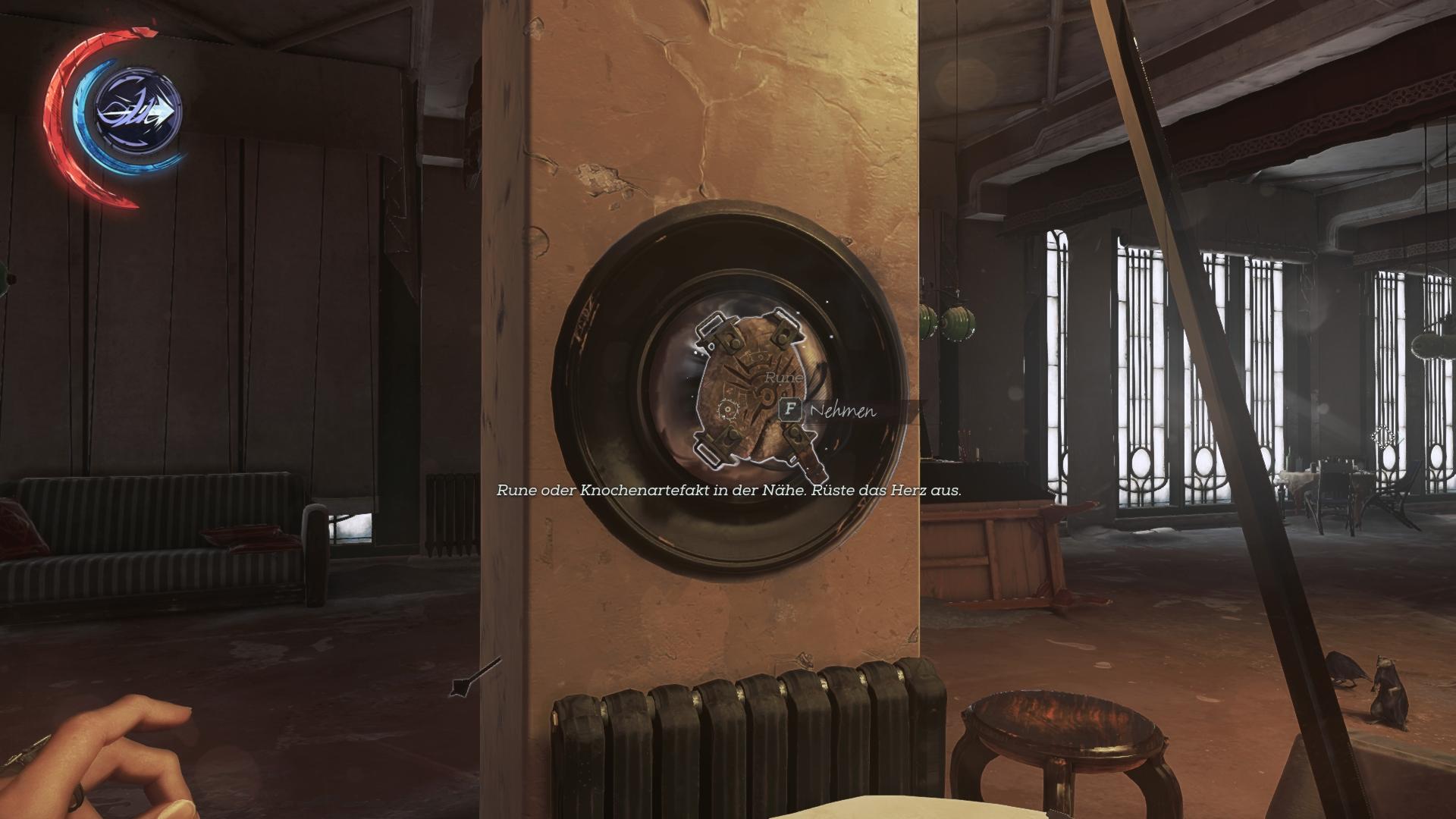 Fundort:Zu dieser Rune gibt es zwei Wege. Entweder steigt ihr im 3. Stock aus dem Fahrstuhl, geht zur Tür raus und springt an der Fassade hoch, um in das Loch über der Klimaanlage zu klettern. Oder ihr fahrt mit dem Lift nach ganz oben, klettert durch die Luke hoch und dadurch in den Raum im 5. Stock, wo die Rune liegt.