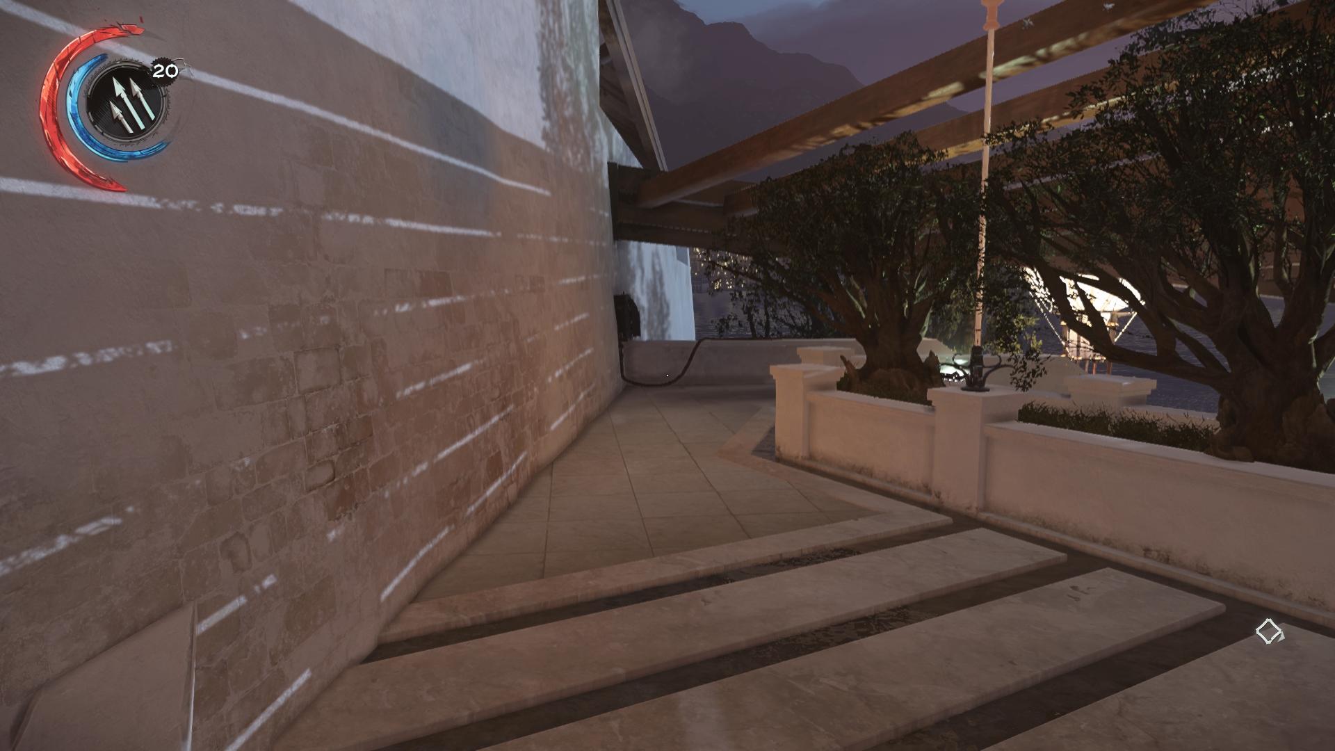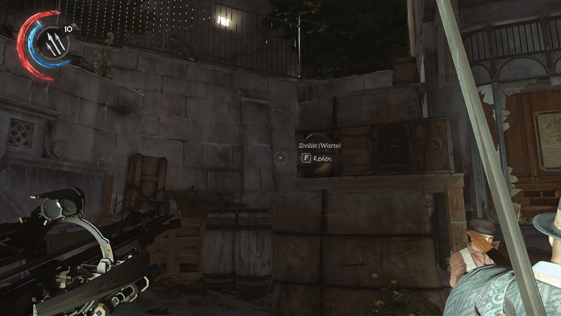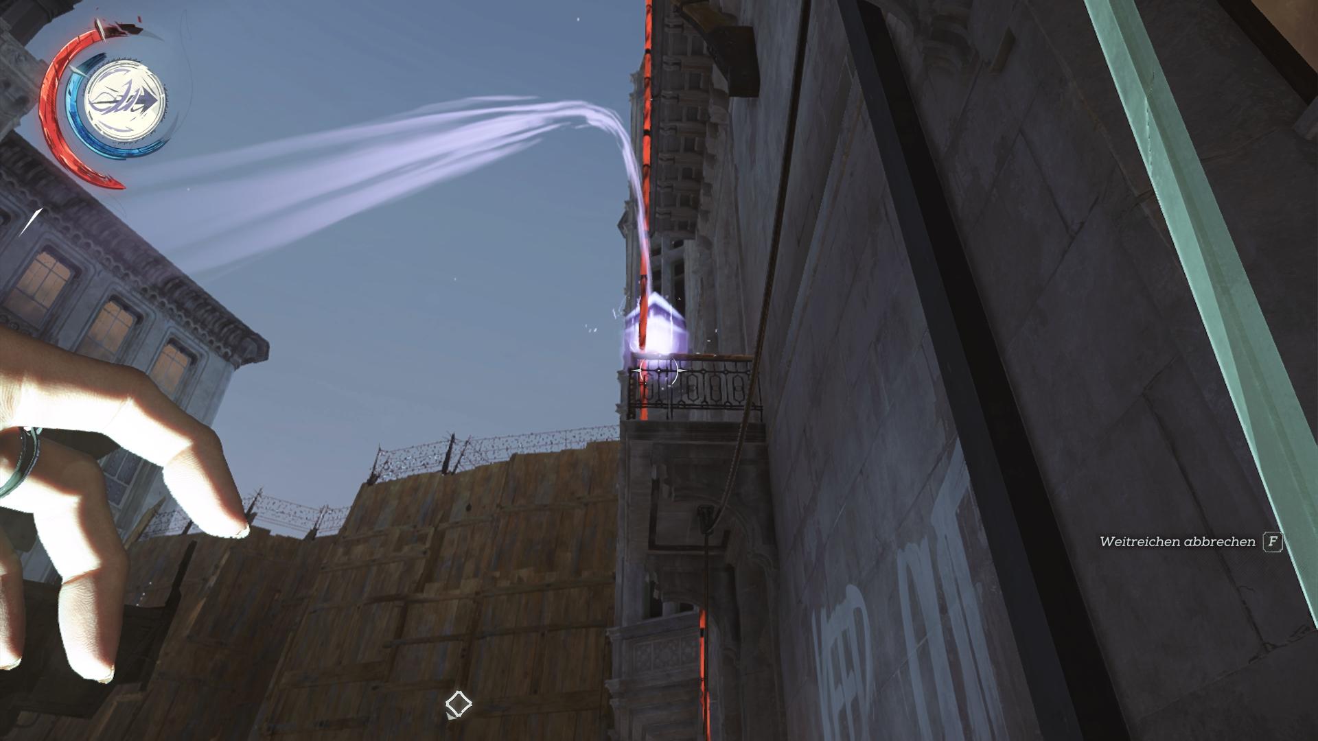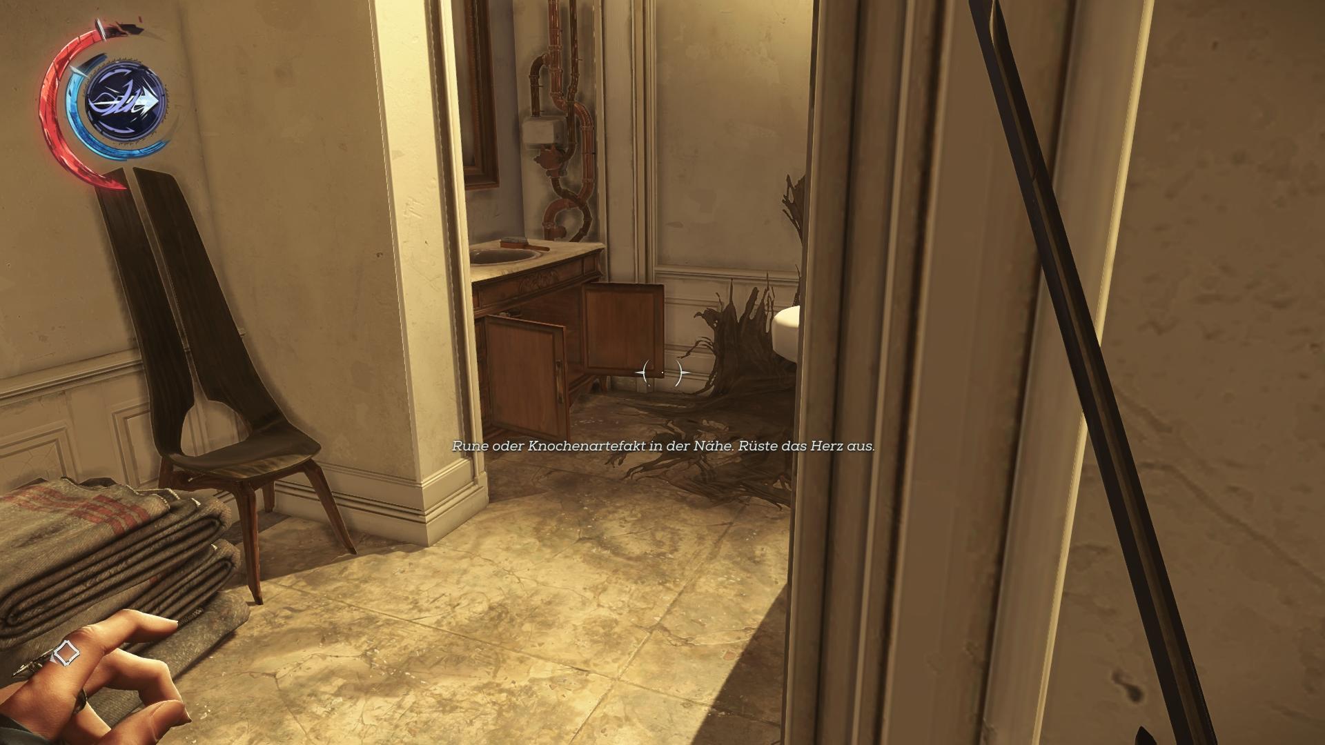 Fundort:Für diese Rune müsst ihr an der Hauswand des Gebäudes neben dem Wachturm (hintere Straße) hochklettern. Versteckt euch hinter dem Eisenbahn-Wagon, bis der Scheinwerfer euch nicht mehr erfassen kann und teleportiert euch dann von einem Balkon zum nächsten in die oberste Etage. Geht dort in die Wohnung und plündert den kleinen Schrank im Badezimmer.