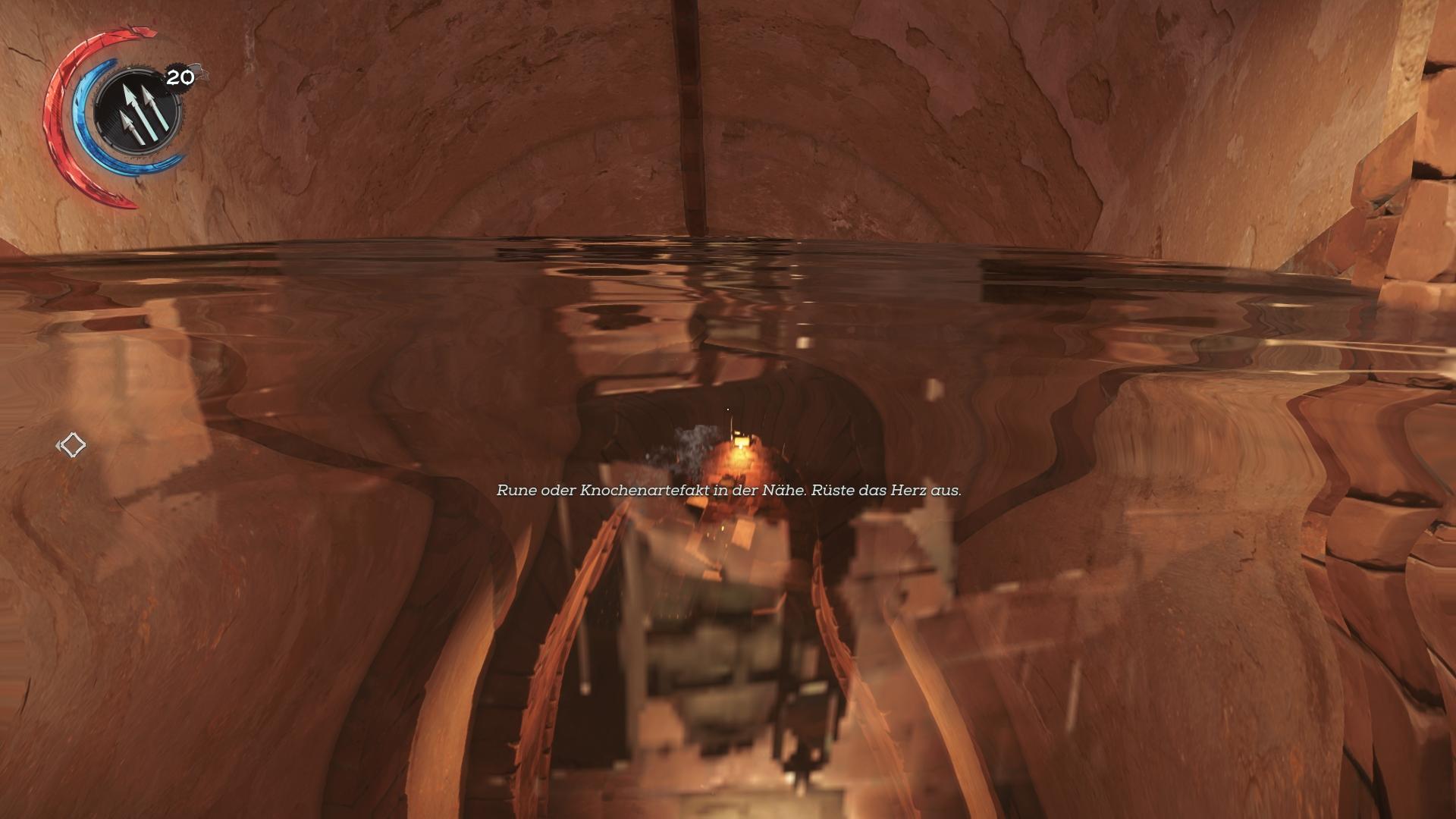 Fundort:Die Rune ist im überfluteten Keller des Palastes versteckt, zu dem es zwei Eingänge gibt. Geht vom Eingang aus durch das Esszimmer auf die Terrassen. Nehmt die Treppe rechts am Kuppeldach runter, dreht euch dann nach links und springt an der Mauer runter, wo das Kabel verläuft. Zu eurer Linken befindet sich dann einer der Kellereingänge, den ihr nur noch aufschlagen müsst. Geht hinein, an den Blutfliegen vorbei und in den tiefergelegenen Abschnitt. Taucht unter der Kiste hinweg und noch einen Raum weiter. Dort sollte die Rune direkt vor euch sein.