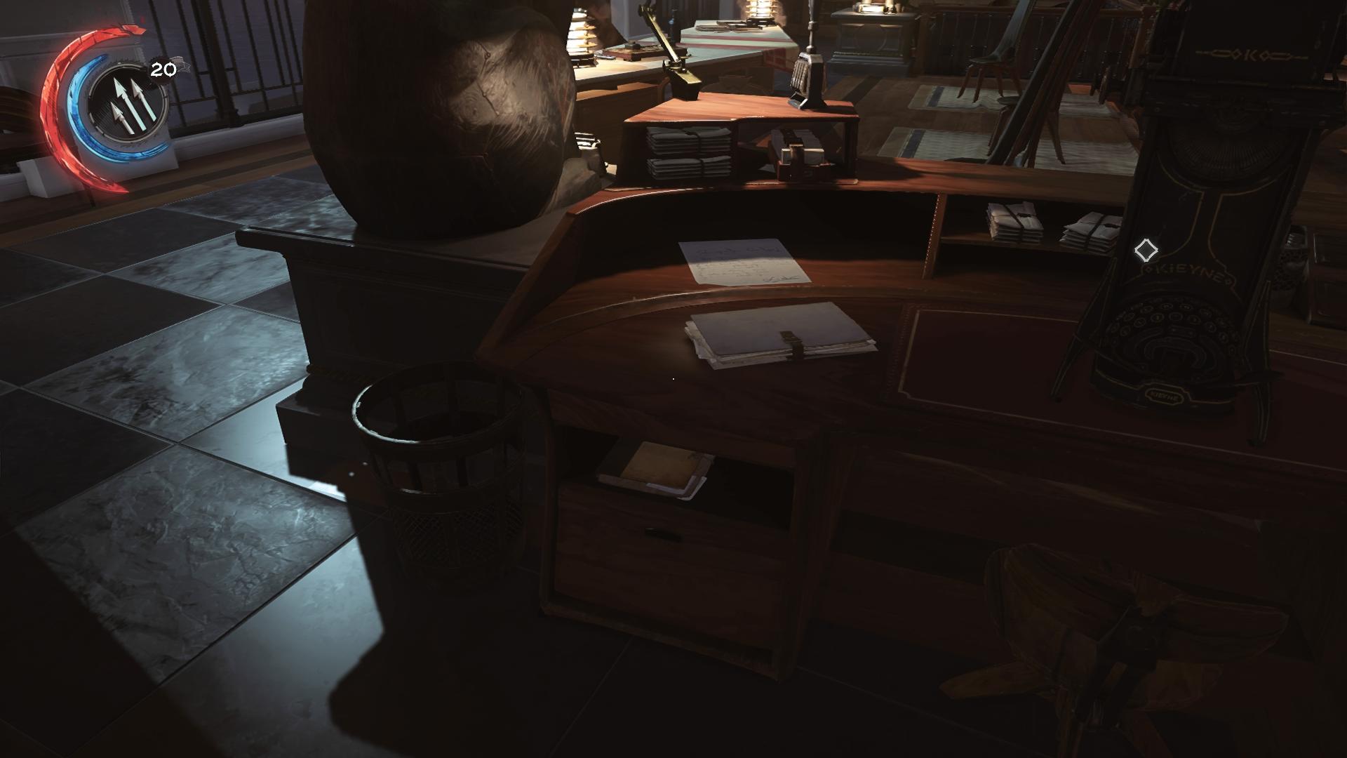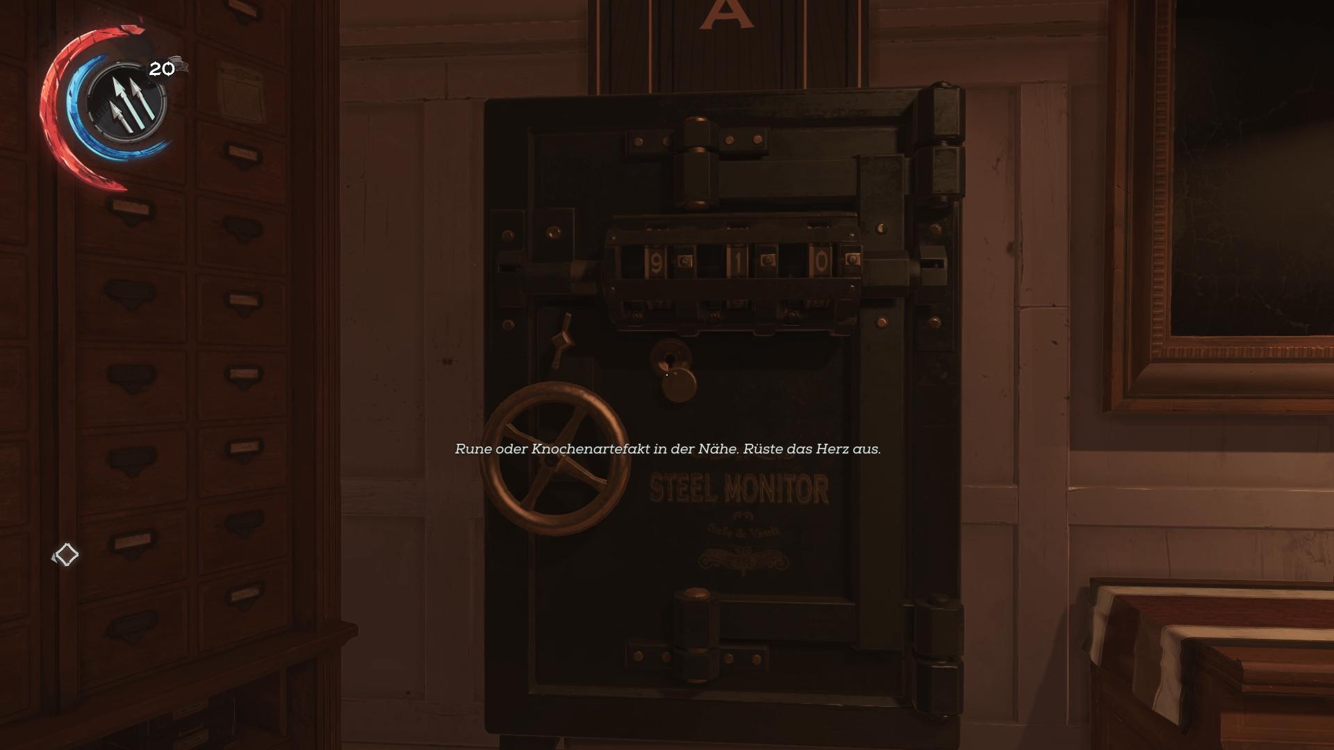 Die Safe-Kombination bekommt ihr jedoch im dritten Stockwerk, welches ihr über Treppe oder Fahrstuhl erreicht. Wenn ihr mit dem Fahrstuhl fahrt, geht nach links ins Büro des Herzogs und zum hinteren Schreibtisch. Von der Treppe aus ist es der Linke. Darauf liegt eine Notiz mit der Tresor-Kombination.