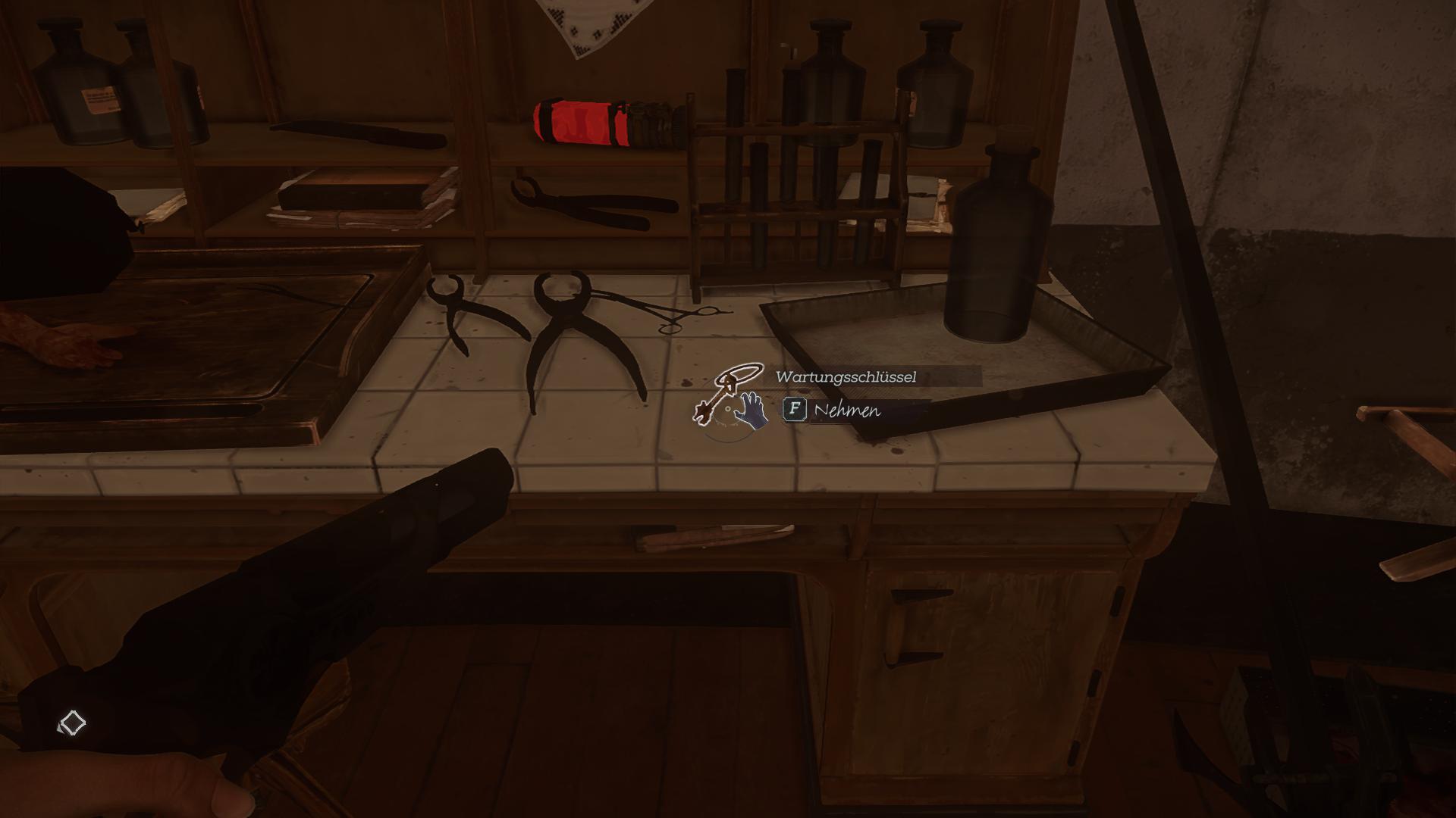 Fundort:Der Wartungsschlüssel liegt auf dem Schreibtisch am Rand des Wartungsbereichs. Was bedeutet, ihr müsst ohne Schlüssel in den Wartungsraum gelangen, wenn ihr den Wartungsschlüssel haben wollt. In dem Raum selbst gibt es neben dem Schlüssel jedoch nur 3 Münzen und ein Solokov-Elixier zu holen. Um in den Raum zu gelangen, könntet ihr die Tür mit der verbesserter Stärke Fähigkeit einschlagen oder schlichtweg von Jindoshs Labor aus am Bay 1 oder Bay 2 Terminal eine Taste drücken, damit sich die Labortische verändern. Bei dem Vorgang entstehen Löcher im Boden, durch die ihr in den Wartungsbereich springen könnt.