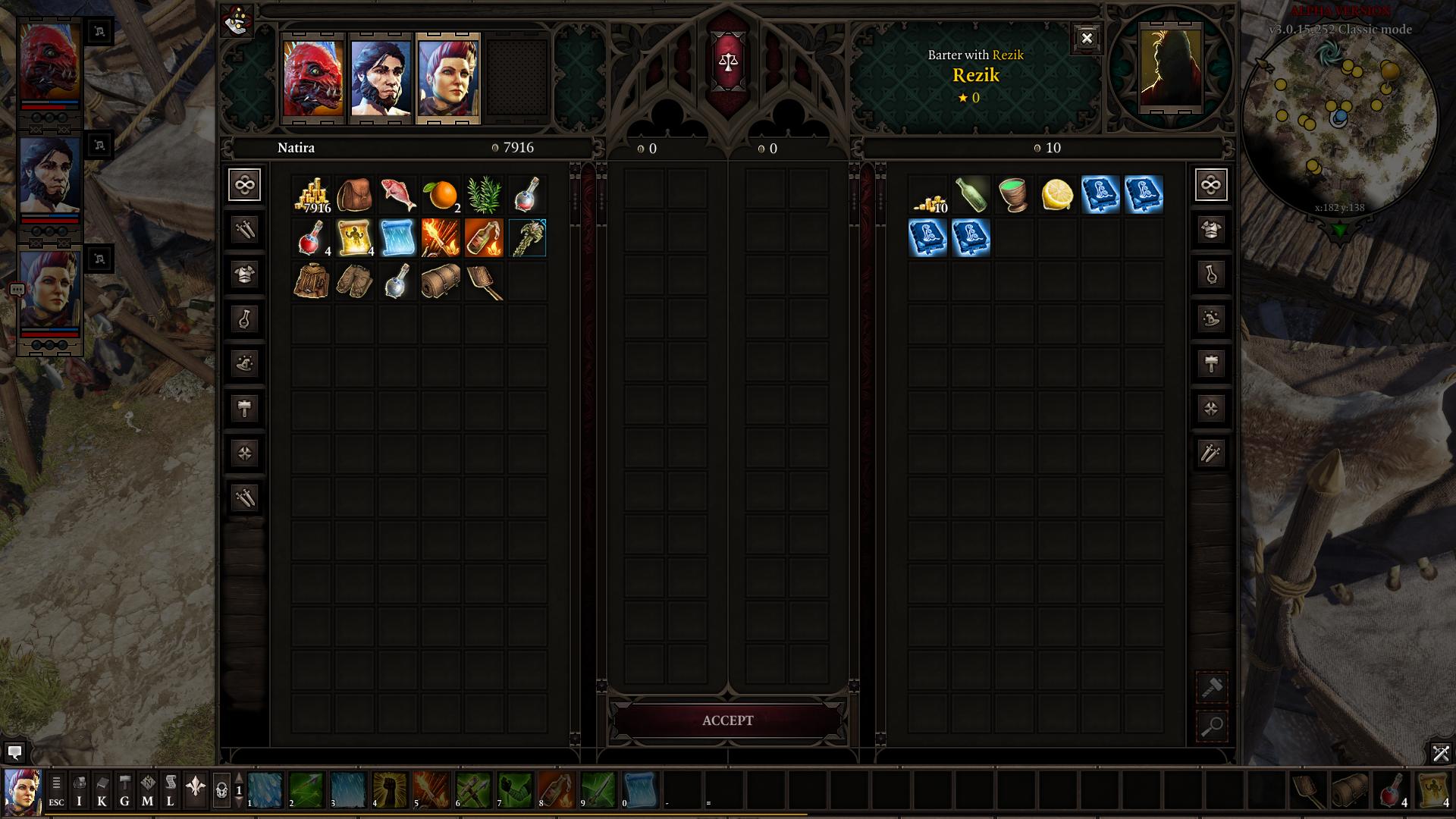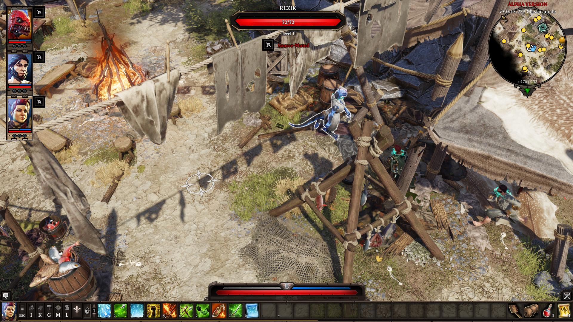 - Fundort:Der Hydrosoph Händler (Rezik) versteckt sich in seinem Zelt südwestlich des Schreins (Shrine of the Divine) im Zentrum des Fort Joy Ghetto. Er ist eine blaue Echse und guckt nur selten unter dem Zeltdach hervor. Geht vom Eingang aus rechts an Gawin und dem Zwerg Laslor vorbei. Das nächste Zelt auf der linken Seite ist Reziks. Griffs Mann Needle steht neben dem Zelt.