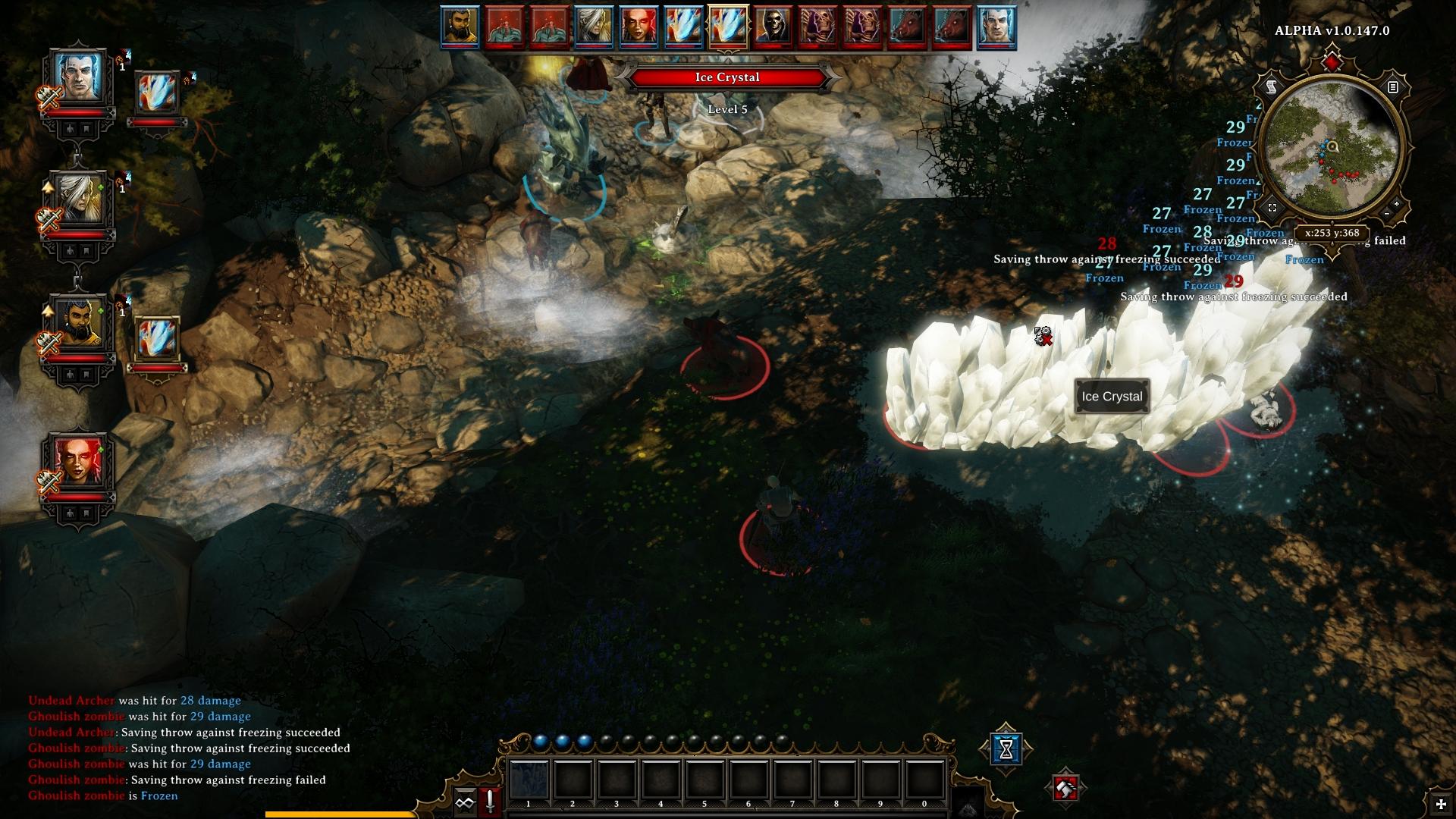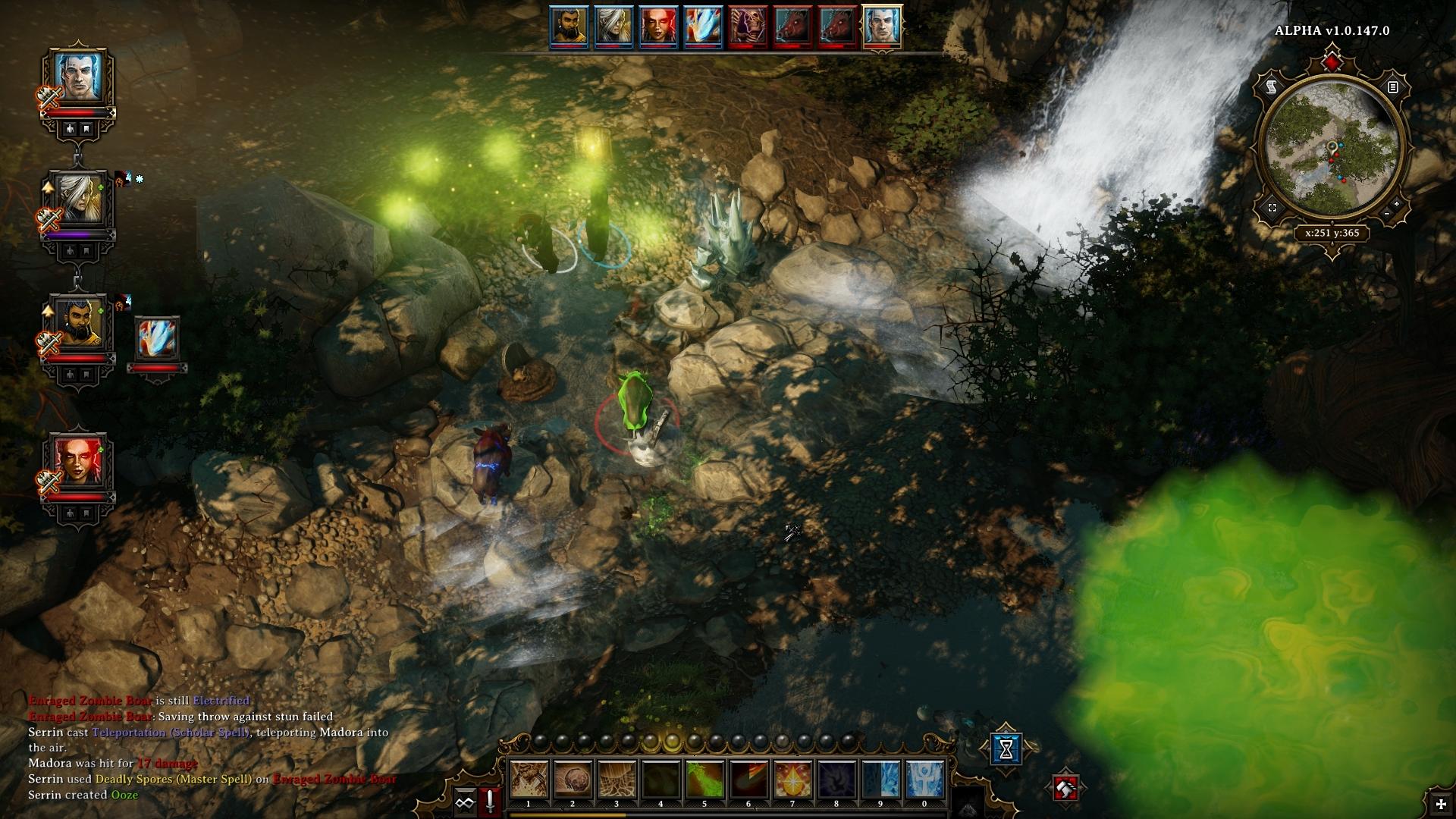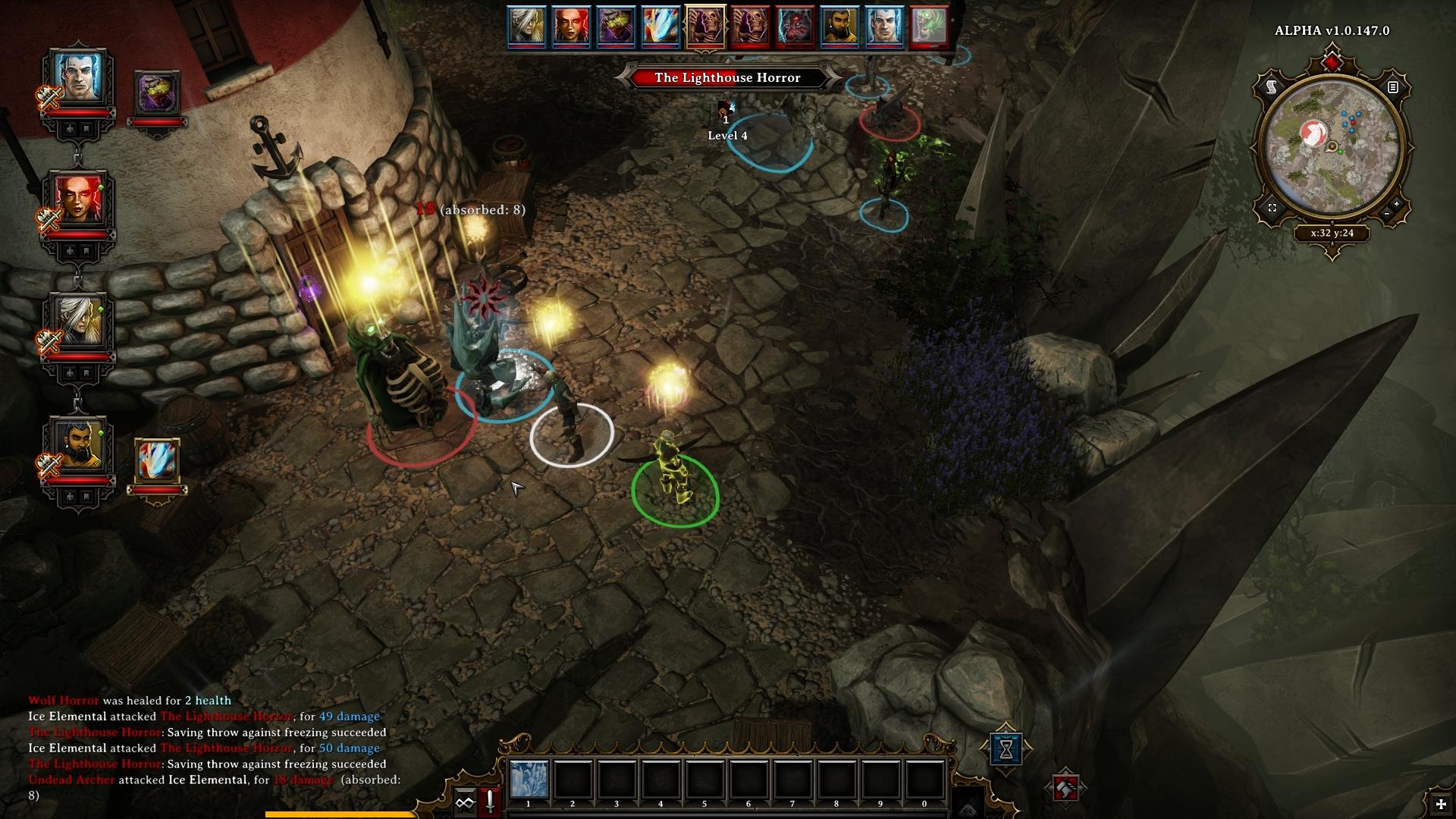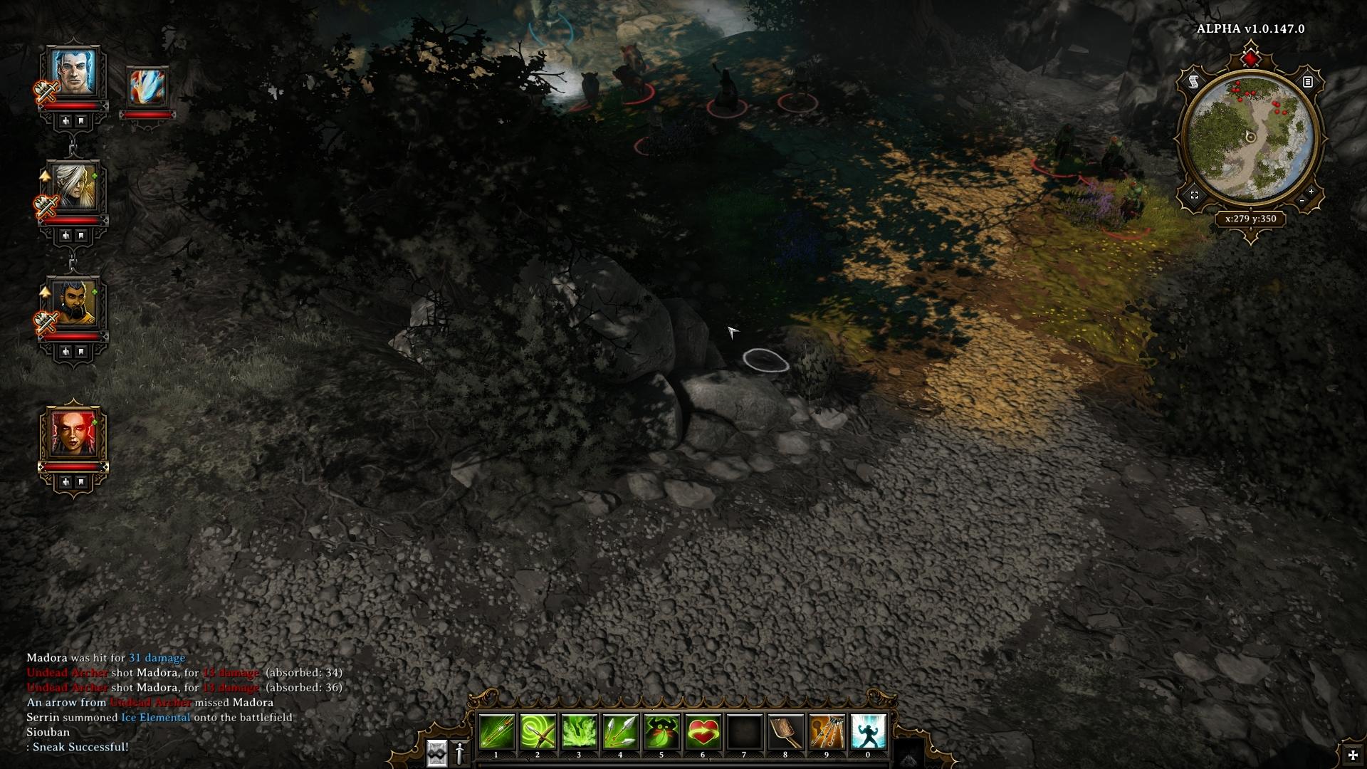 Eine Besonderheit des rundenbasierenden Kampfsystems ist es, dass sich nur die im Kampf befindlichen Charaktere rundenweise bewegen müssen. Was sich verwirrend anhört, wird klar wenn man weiß, dass sich die Gruppe aufteilen lässt. Ein Charakter kann jederzeit (außerhalb des Kampfes) von der Gruppe getrennt werden, indem man sein Portrait aus der Gruppe zieht. Optisch wird dabei die Kette zwischen den Portraits entfernt und spielerisch folgt der Charakter nicht mehr dem Weg des Anführers. Auf diese Weise können der Krieger (Warrior) und die beiden Zauberer (Wizards) z.B. frontal auf die Gegner zu marschieren und in den Kampf verwickelt werden. Nachdem in der ersten Runde alle Gegner auf das Trio zu gelaufen sind, läuft der überlebenskünstler (Survivor) in Echtzeit einen anderen Weg entlang und kommt von hinten zum Geschehen. Erst in dem Moment wo er einen Angriff ausführt, oder von jemandem im Kampf gesehen wird, wechselt auch er in den Runden-Modus. Es bieten sich also unzählige Wege den Feinden auf hinterhältige Weise den Gar aus zu machen.
