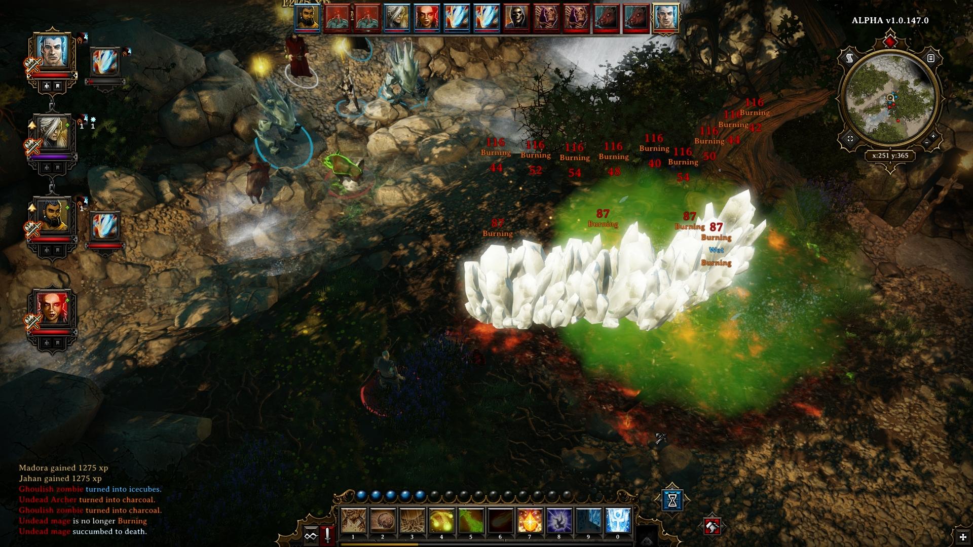 Die vier Elemente der Magieschulen können gegenseitig Effekte aufheben oder verstärken. So verwandelt sich der eben erzeugte "Eiswall" durch einen "Feuerball" in eine Wasserpfütze. Ein Frostzauber könnte die Wasserpfütze in eine rutschige Fläche verwandeln, auf der sowohl Spieler-Charaktere als auch Gegner ausrutschen können. Ein "Blitz" hingegen nutzt die Leitfähigkeit des Wassers aus und könnte mehrere Gegner gleichzeitig treffen, die sich darin befinden. Mächtige Zauber lassen immer eine Art von Bodeneffekt zurück, durch den weitere Personen verletzt werden. "Feuerbälle" hinterlassen glühenden Boden, Rollende Felsbrocken ("Boulder Dash" Zauber) erzeugen "Giftwolken" und ein sterbender "Eiselementar" hinterlässt eine rutschige Eisfläche. Mit einem Zauber des entgegengesetzten Elements können sie anschließend aufgehoben werden. So löscht ein "Regen" Zauber glimmenden Boden, oder ein "Tornado" weht eine "Giftwolke" davon.