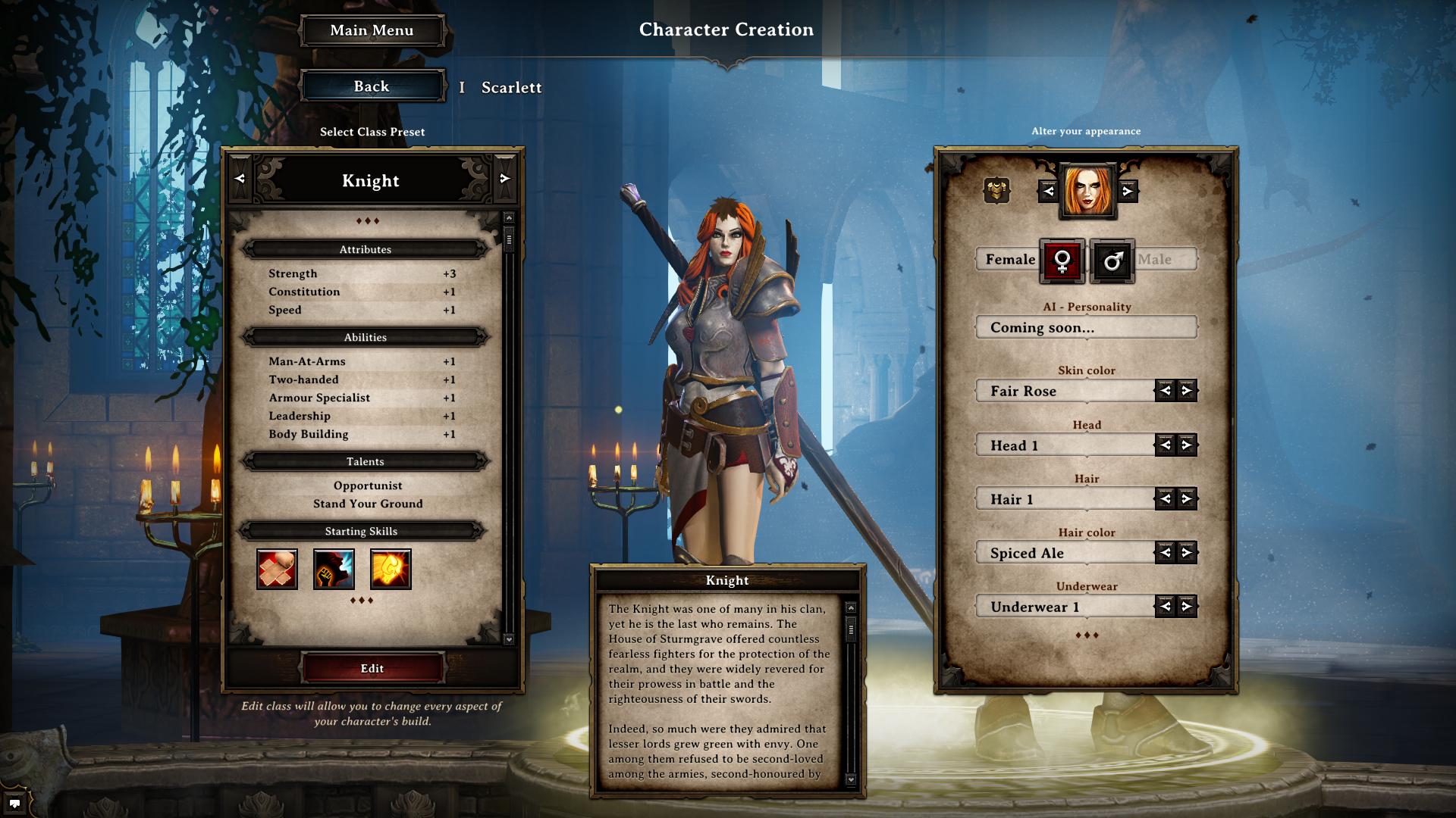 Spezialisiert in Kriegstaktiken. Der Ritter ist nicht nur im Kampf trainiert, sonder auch darin Truppen zu befehligen.