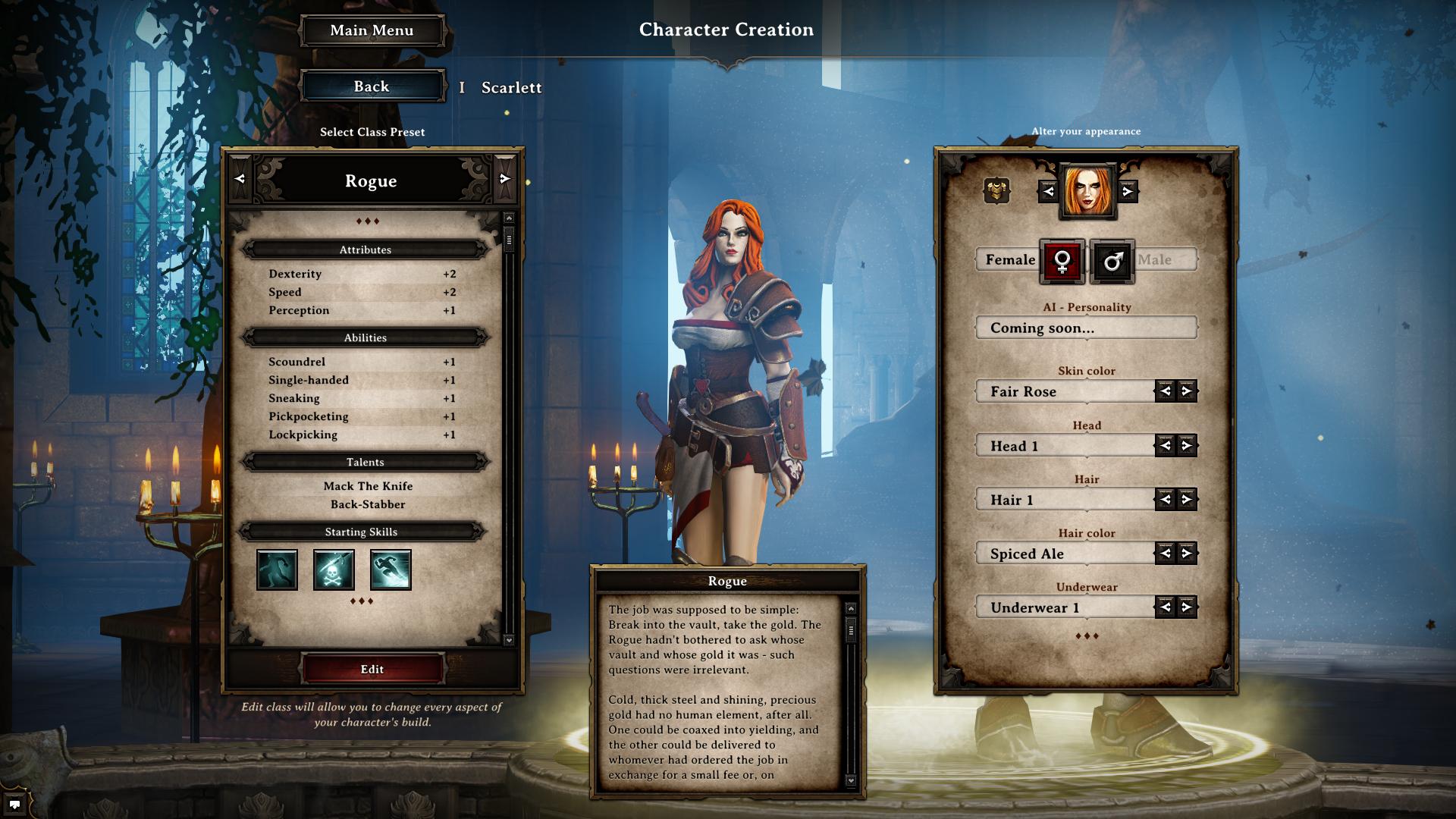 Divinity: Original Sinn schlägt bei der Charaktererschaffung elf verschiedene Beispielklassen vor, die nach individuellen Vorstellungen verändert werden können. Hier eine kurze Übersicht der Klassen und ihrer verwendeten Attribute, Fähigkeiten und Talente: