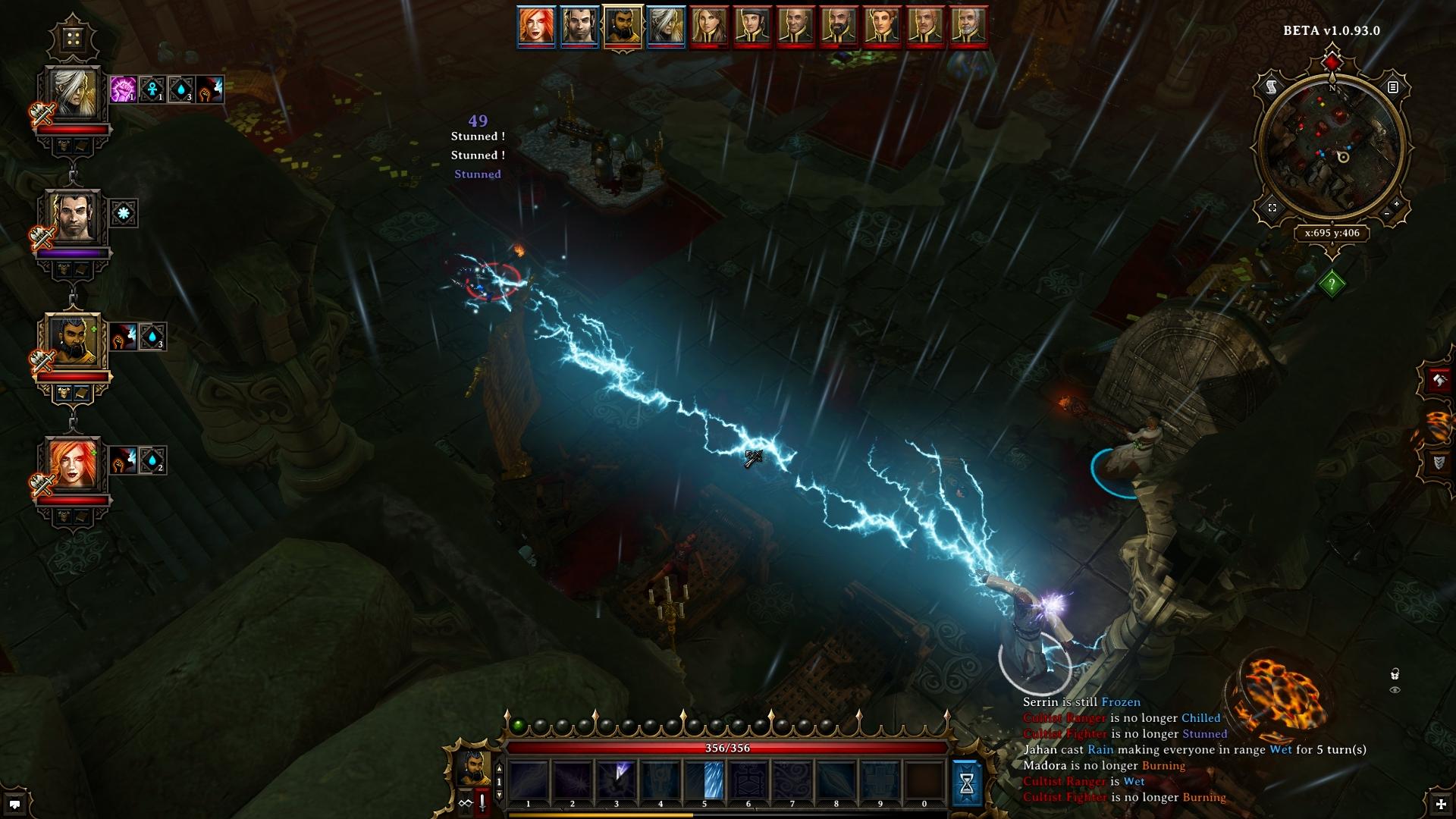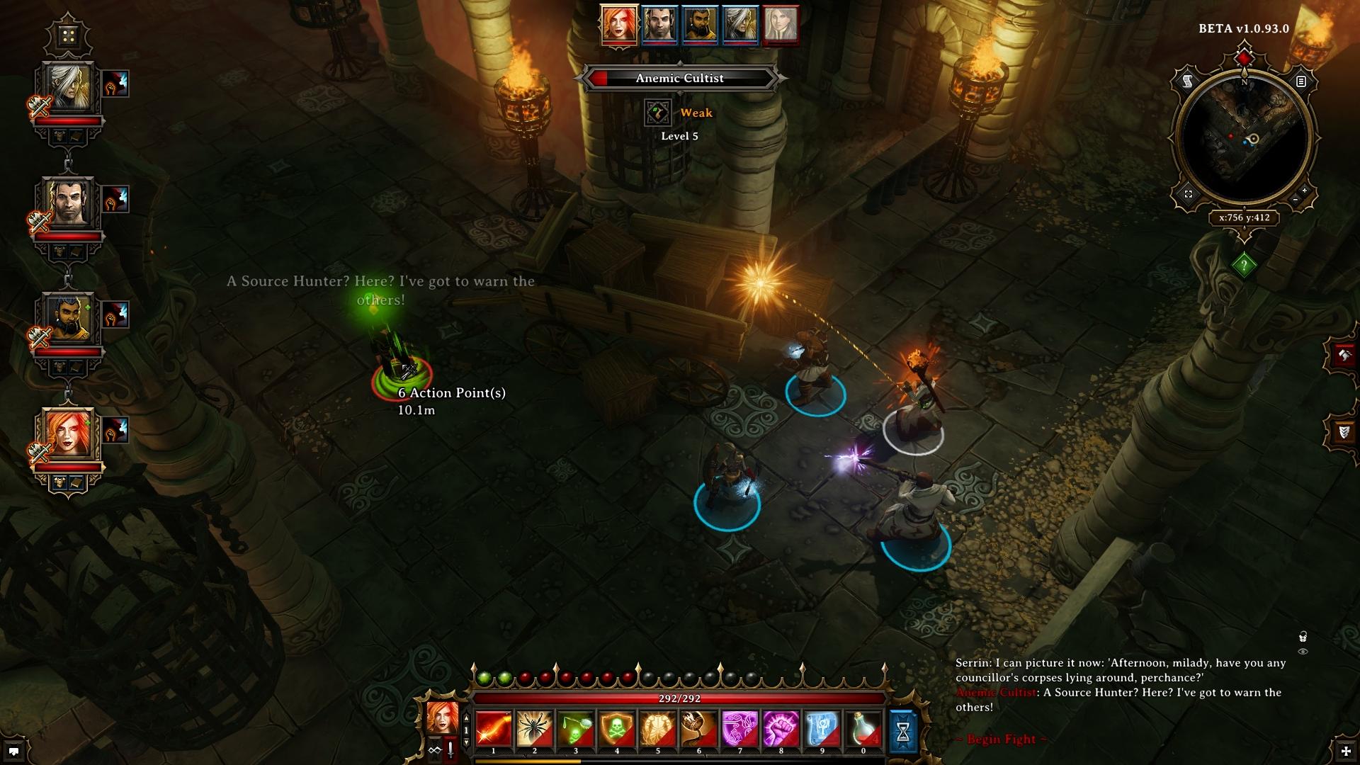 In der scheinbaren Hauptkammer sind neun von Evamarias Kultisten verteilt. Je nachdem wie weit ihr vordringt, müsst ihr eventuell nicht alle auf einmal bekämpfen. Haltet ihr euch nur nahe der Eingangstür auf, sollten zunächst nur die fünf aus dem linken Flügel auf euch los gehen. Auf Grund der Übermacht ist es zu empfehlen, einen Elementar oder eine andere beschworene Kreatur an die Front zu schicken, um erste Geschosse abzufangen. Die magiebegabten Kultisten werden versuchen euch einzufrieren oder in Brand zu setzen. Versucht dem mit Zaubern wie "Elementarabsorbtion" (Hexerei) oder "Immun gegen Verbrennung" (Hydrosophist) vorzubeugen.