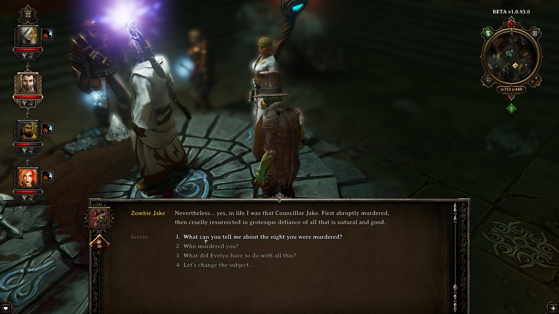 Evelyn selbst ist in dem tiefergelegenen Raum anzutreffen, zu dem ihr durch die Tür im Osten gelangt. Erstaunlicherweise steht das verstorbene Ratsherr als Zombie Jake direkt neben ihr. Nachdem das Frage-und-Antwort-Spielchen mit Evamaria beendet habt, beschwört sie fünf weitere Feinde (siehe Bestiarium für Taktik). Im Anschluss an den Bosskampf könnt ihr euch mit Zombie Jake unterhalten. Er kann sich an jedes Detail der Mordnacht erinnern. Eigentlich hatte er versucht seine untreue Ehefrau Esmeralda mit dem Herzog (Duke of Ferol) in flagrante zu ertappen. Doch in dem Zimmer, wo sie sich laut einem Informanten aufhalten sollten, befand sich stattdessen die Weiße Hexe (White Witch), welche ihm mit einer Fingerbewegung umbrachte. Kurze Zeit später wurde er von Evamaria (Evelyn) als Zombie wiedererweckt und somit kann er eure Aufmerksamkeit jetzt auf die Luculla-Wälder im Norden richten, wo sich die Hexe in einer Hütte aufhalten soll.