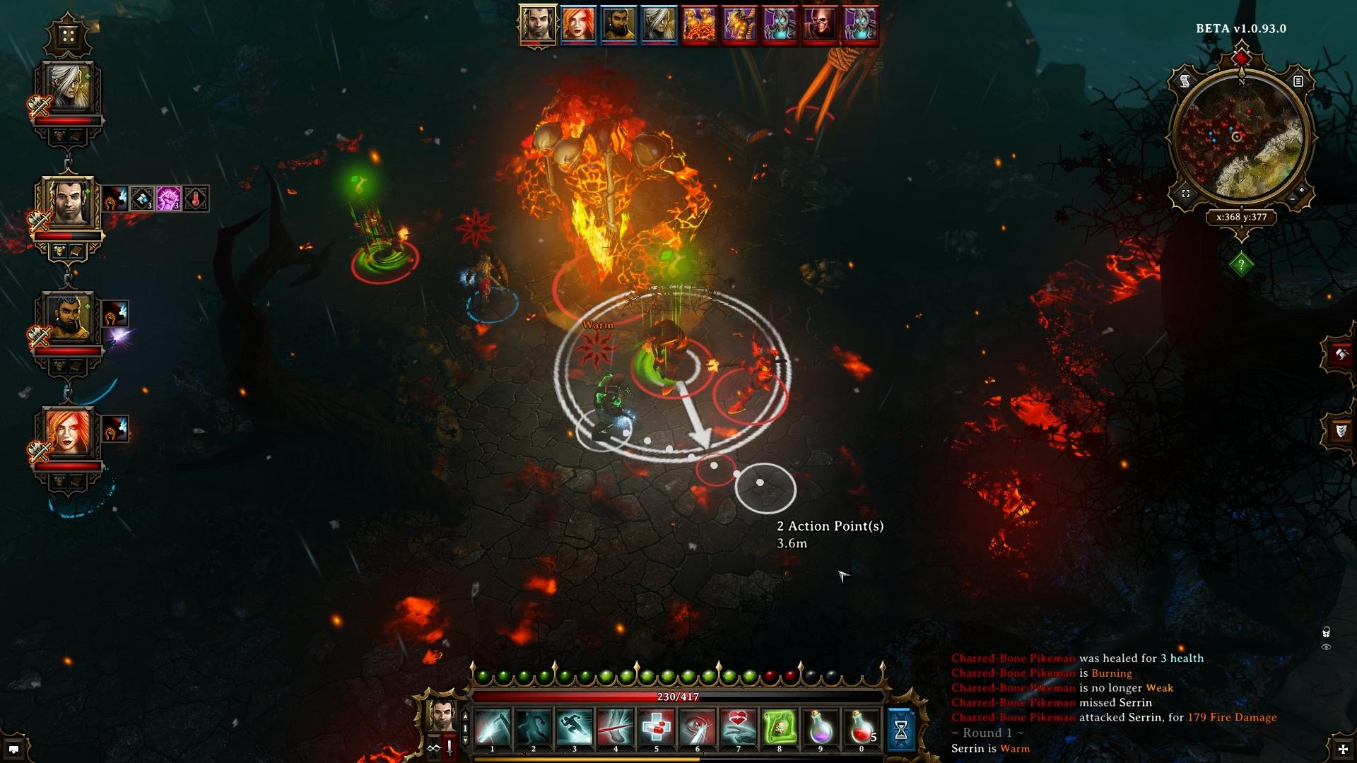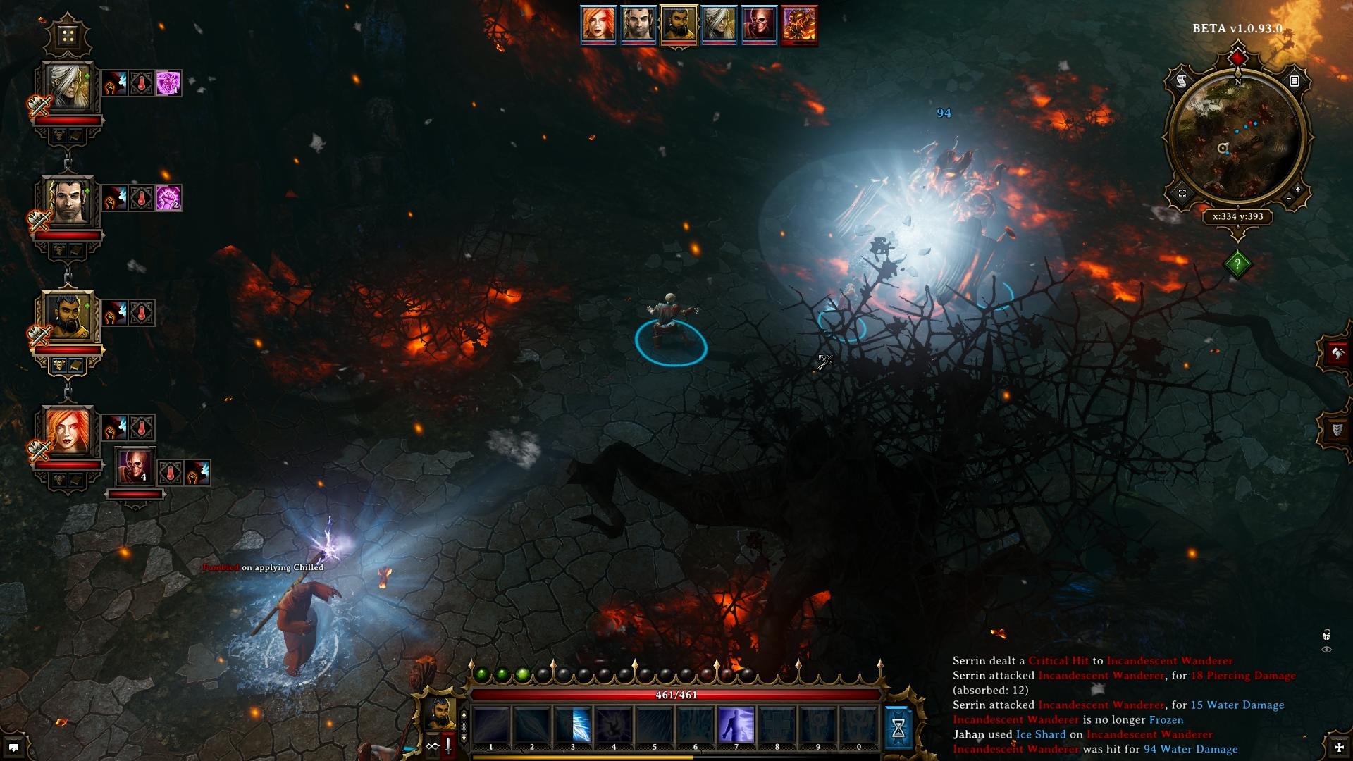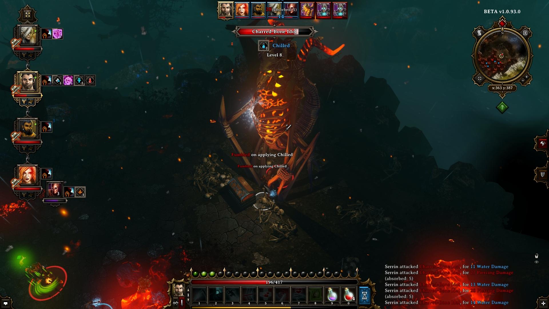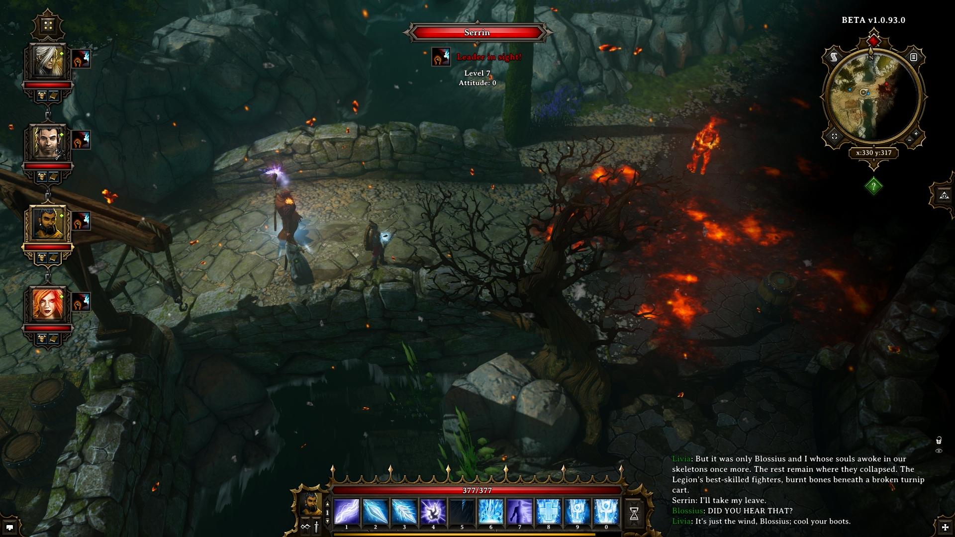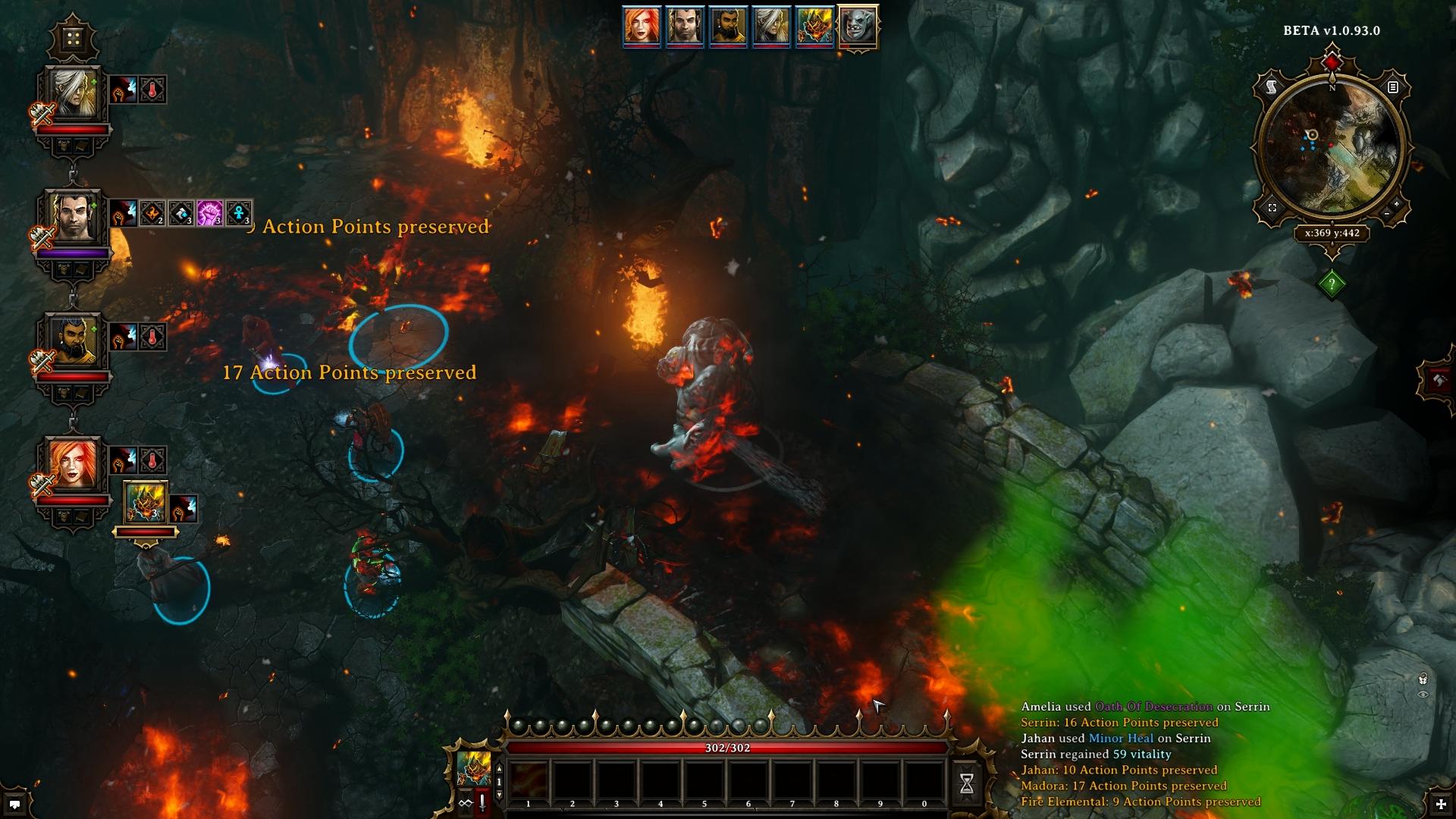 Für den Weg durch das brennende Gebiet sind Wasserzauber unentbehrlich. Einen Regen Zauber, um den Boden zu löschen, sollte Jahan von Anfang an beherrschen. Alternativ dazu können teilweise auch die Wasserfässer in dem Gebiet neu platziert und zerschossen werden. Ein zusätzlicher Eiselementar und (Stechender) Eissplitter Zauber wäre für die kommenden Feinde jedoch noch praktischer. Falls die Hydrosophist (Wasser-Zauber) Stufen eurer Charaktere nicht ausreichen, um die ganzen Zauber zu wirken, solltet ihr vielleicht über entsprechende Schriftrollen nachdenken.
