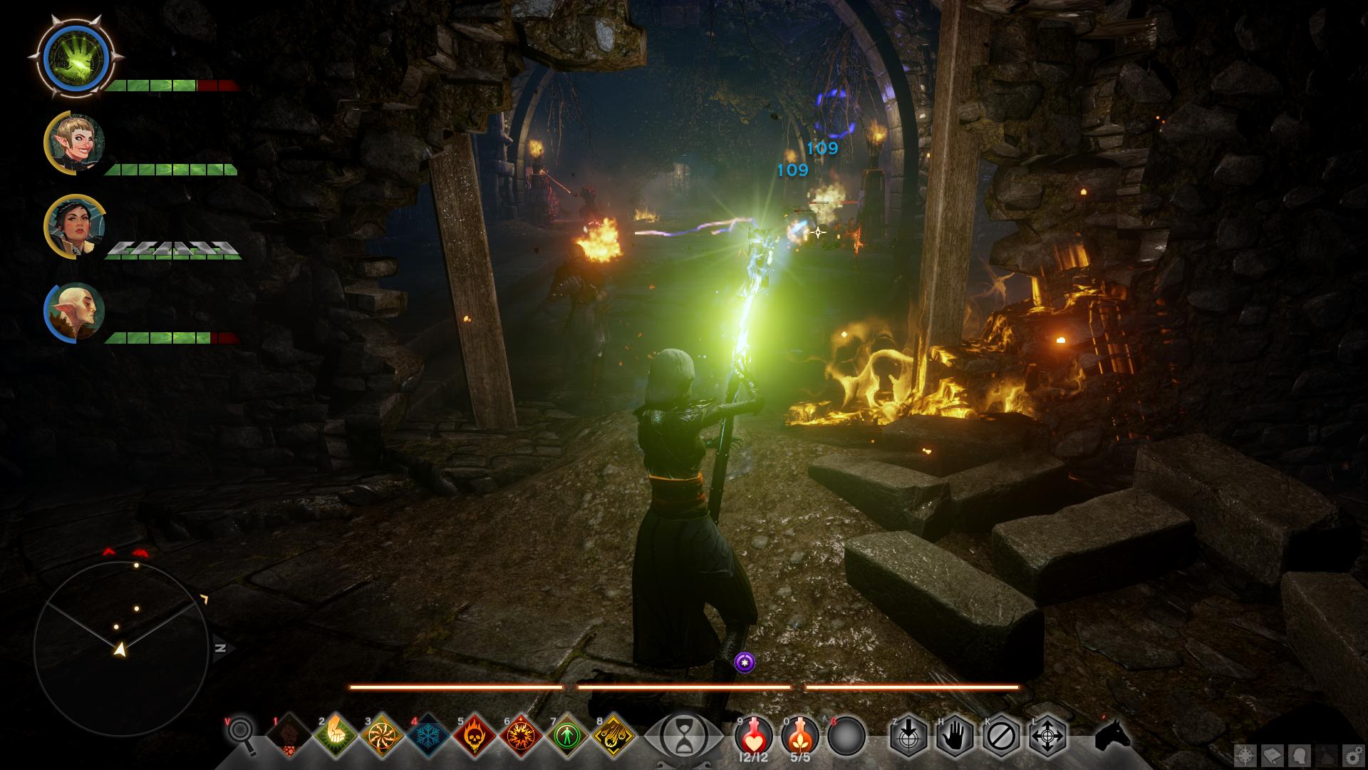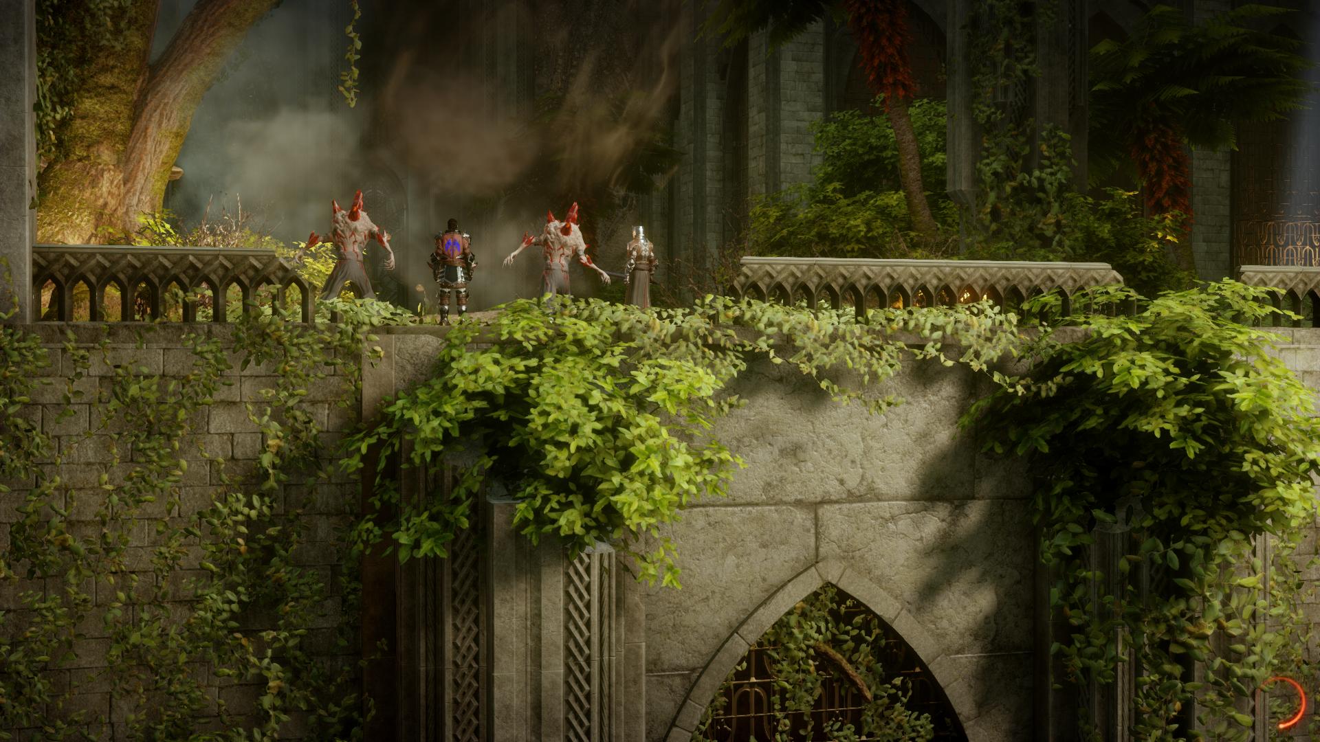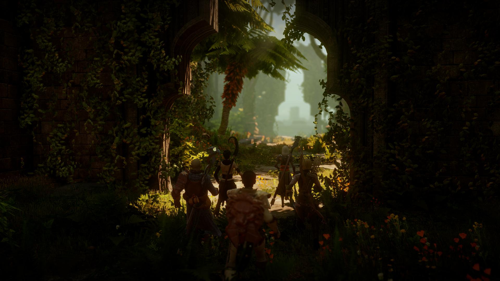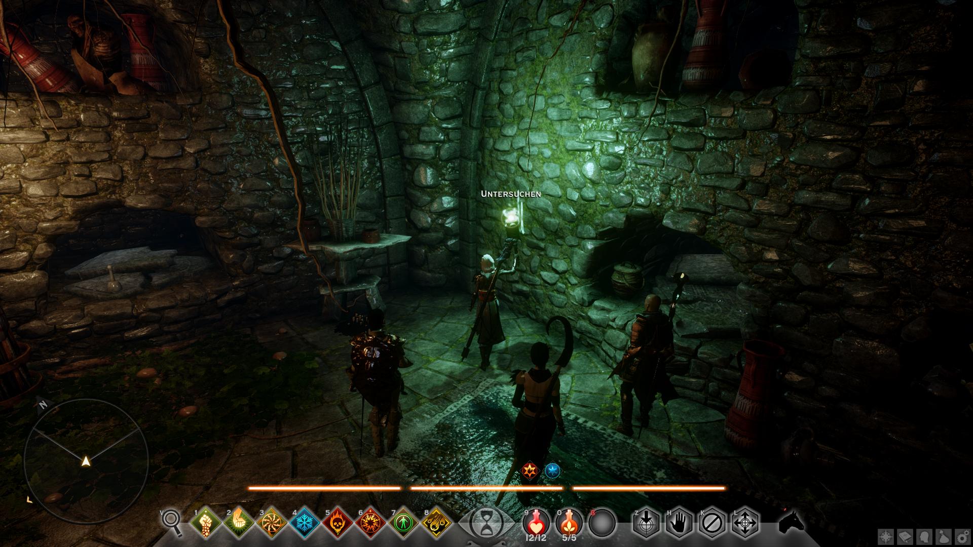 Corypheus und sein Drache sind vorerst ausgesperrt, aber ein Teil der Roten Templer befindet sich bereits im Mythal Tempel und ihr müsst vor ihnen im Inneren sein. Auch wenn sich das Ziel offenbar geändert hat. Denn wie sich in der anfänglichen Diskussion herauskristallisiert, lag Morrigan falsch und Corypheus ist hinter etwas mit dem Titel "Quelle der Trauer" her.