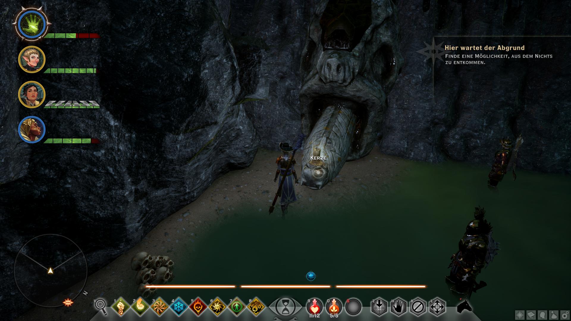 Zusammen mit Hawke und Strout seid ihr sanft im Nichts [1] gelandet. Was wohl hauptsächlich daran liegt, dass es im Nichts kein oben und unten gibt. Bevor ihr die Treppe im Osten nach oben nehmt, könnt ihr seitlich davon zwei lohnenswerte Nebenaufgaben erledigen. Der linke Gang im Nordosten führt zum ersten von fünf Spiegeln, der euch Magie +1 gibt. Rechts von der Treppe, ganz im Süden, steht hingegen eine Kerze. Nehmt ihr die auf, startet die "Die Ängste der Träumer" Nebenquest. Platziert die gefundene Kerze auf dem Tisch nebenan und der erste Schritt dieser Aufgabe ist erledigt. Was euch erneut Magie +1 gibt.