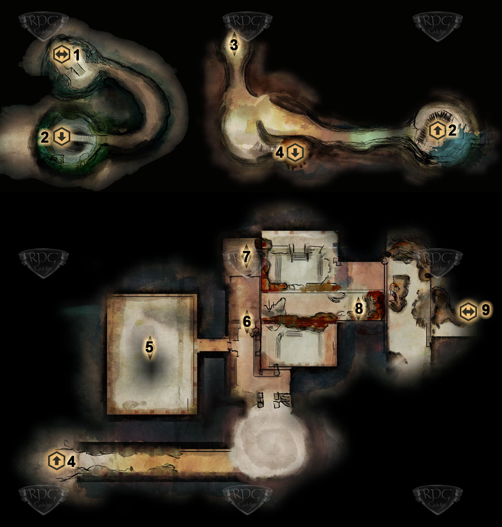 Die Überflutete Höhle ist ein kleines Untergebiet des Kammwaldes, was durch die Trockenlegung des Stausees zugänglich wird. Hier unten befindet sich der Riss ins Nichts, der für die Untotenplage des Kammwaldes verantwortlich ist. Außerdem könnt ihr in der Überfluteten Höhle zwei Mosaikteile von "Befreiung der Sklaven" und eines von Solas Schleiergeräten finden.