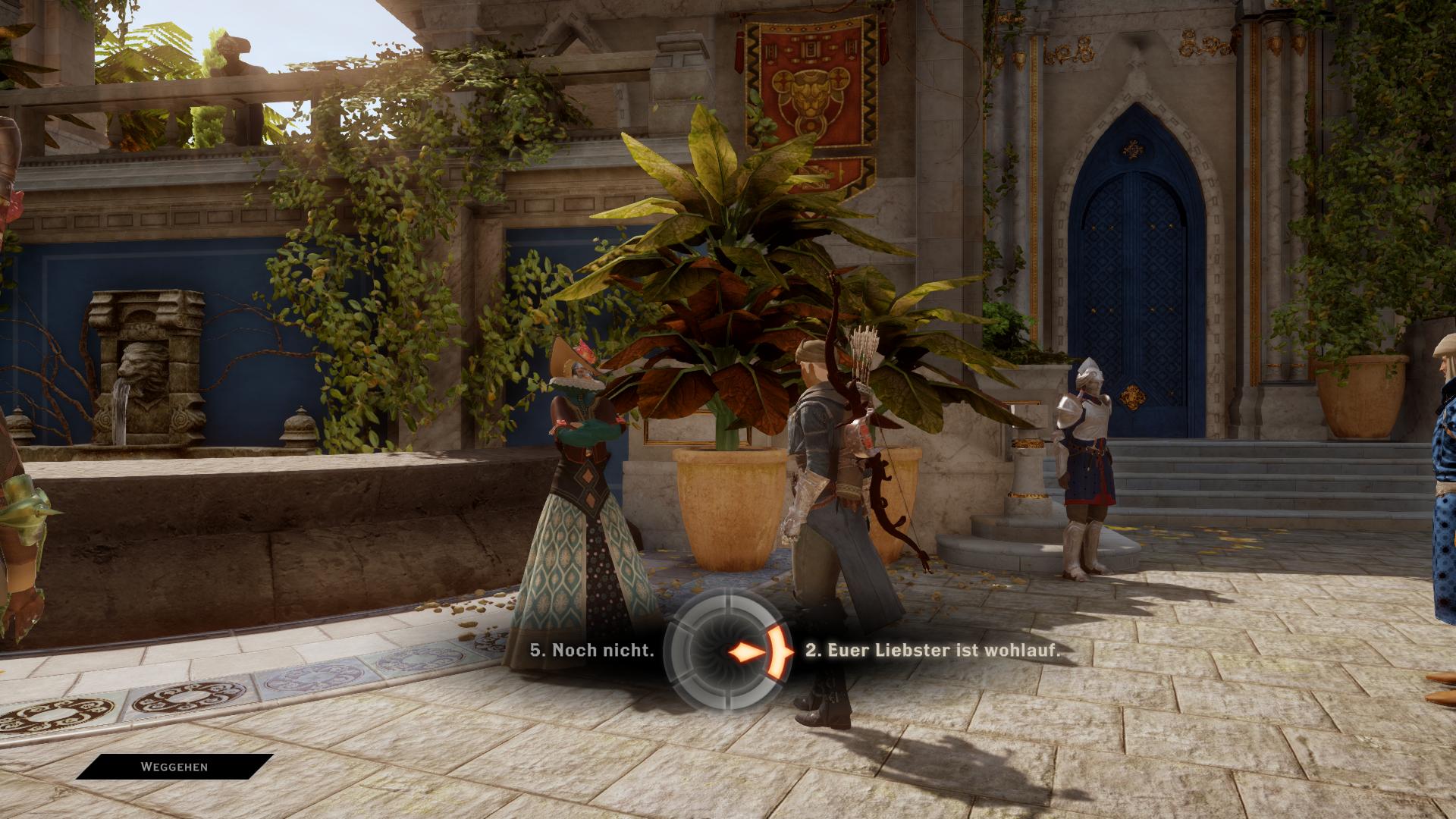 Josephines eigene Lösung macht sie aber glücklicher bzw. euch gegenüber wohlgesonnener. Sprecht deshalb besser Josi an und fragt sie nach dem nächsten Schritt. Das schaltet den "Einen Bürgen für die Du Paraquettes finden" Auftrag frei, den ihr eurem Kriegsrat erteilen solltet. Besprich im Anschluss daran erneut den nächsten Schritt mit Josephine und suche dann nach einem Richter aus Orlais, der euch hilft ("Das Wohlwollen eines Richters gewinnen" Auftrag). Ein weiteres Gespräch später, folgt der "Auf dem Fest mit Ministerin Bellise sprechen" Auftrag, der euch ein Treffen mit Bellise verschafft. Parallel zum zweiten dieser drei Aufträge des Kriegsrates, müsst ihr selbst mit Dionne am Brunnen in Val Royeaux den Brief aus dem ersten Auftrag bringen.