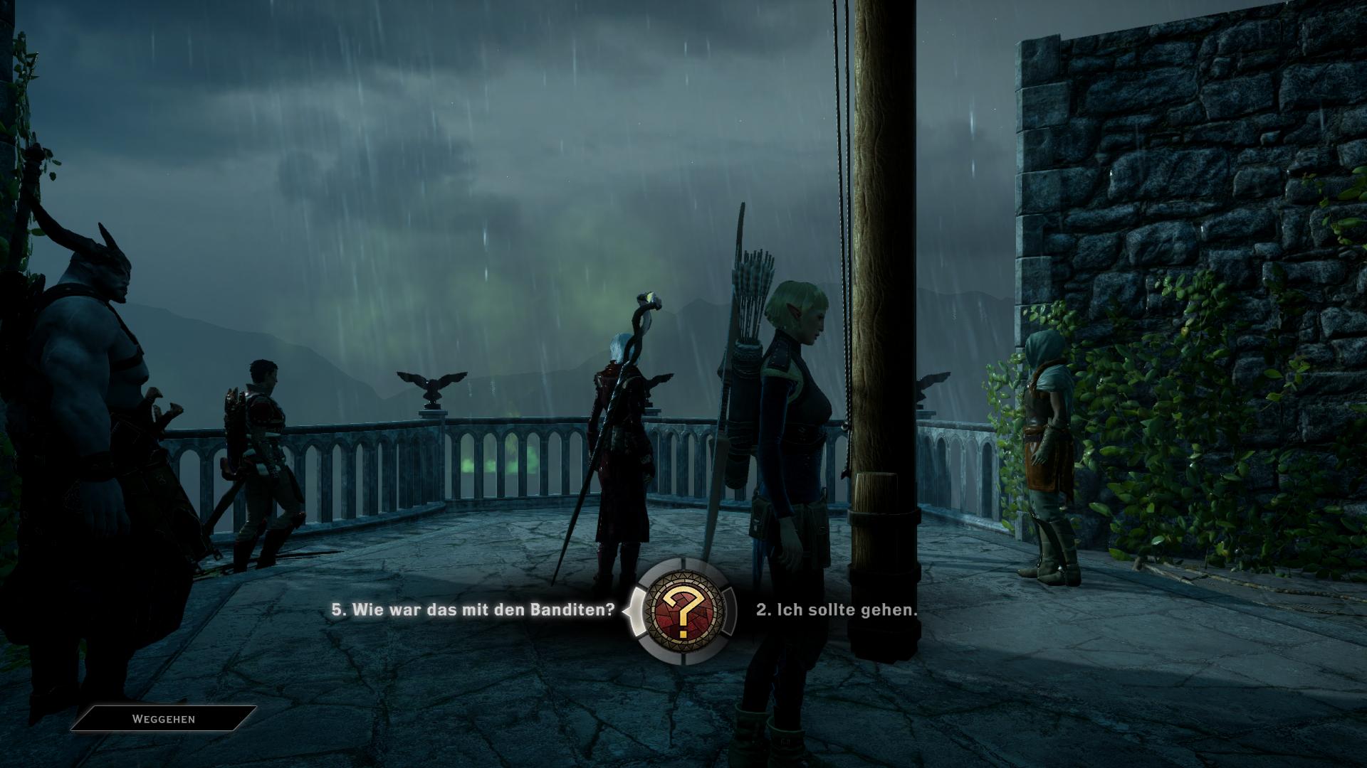 Oben am Fahnenmast der Feste Caer Bronach unterhalten sich zwei Spione über die "Ausrottung der Banditen", sprecht ihr sie darauf an, startet die gleichnamige Quest. Die Aufgabe selbst ist kinderleicht erfüllt. Ihr müsst lediglich acht beliebige Banditen in dem Gebiet südöstlich der Festung [11] töten und von denen laufen dort mehr als genug rum.