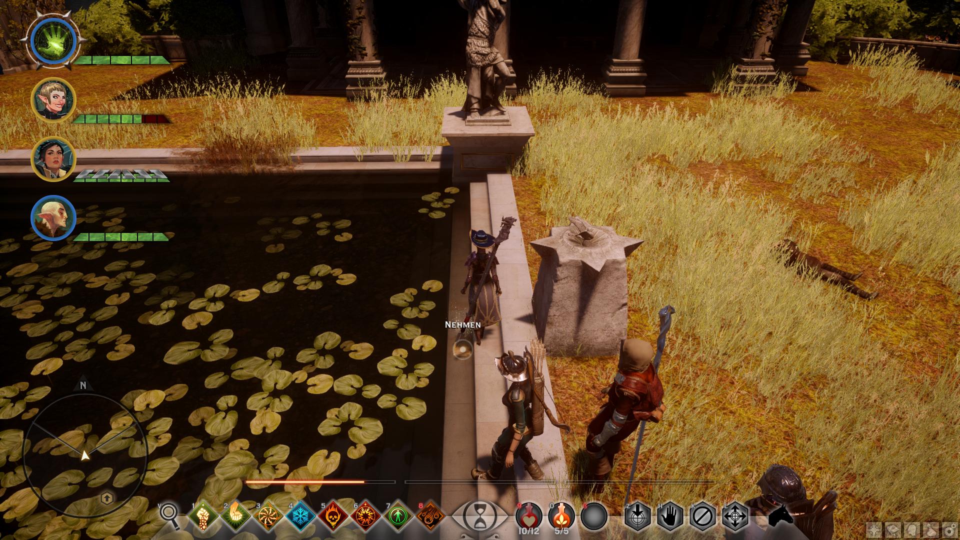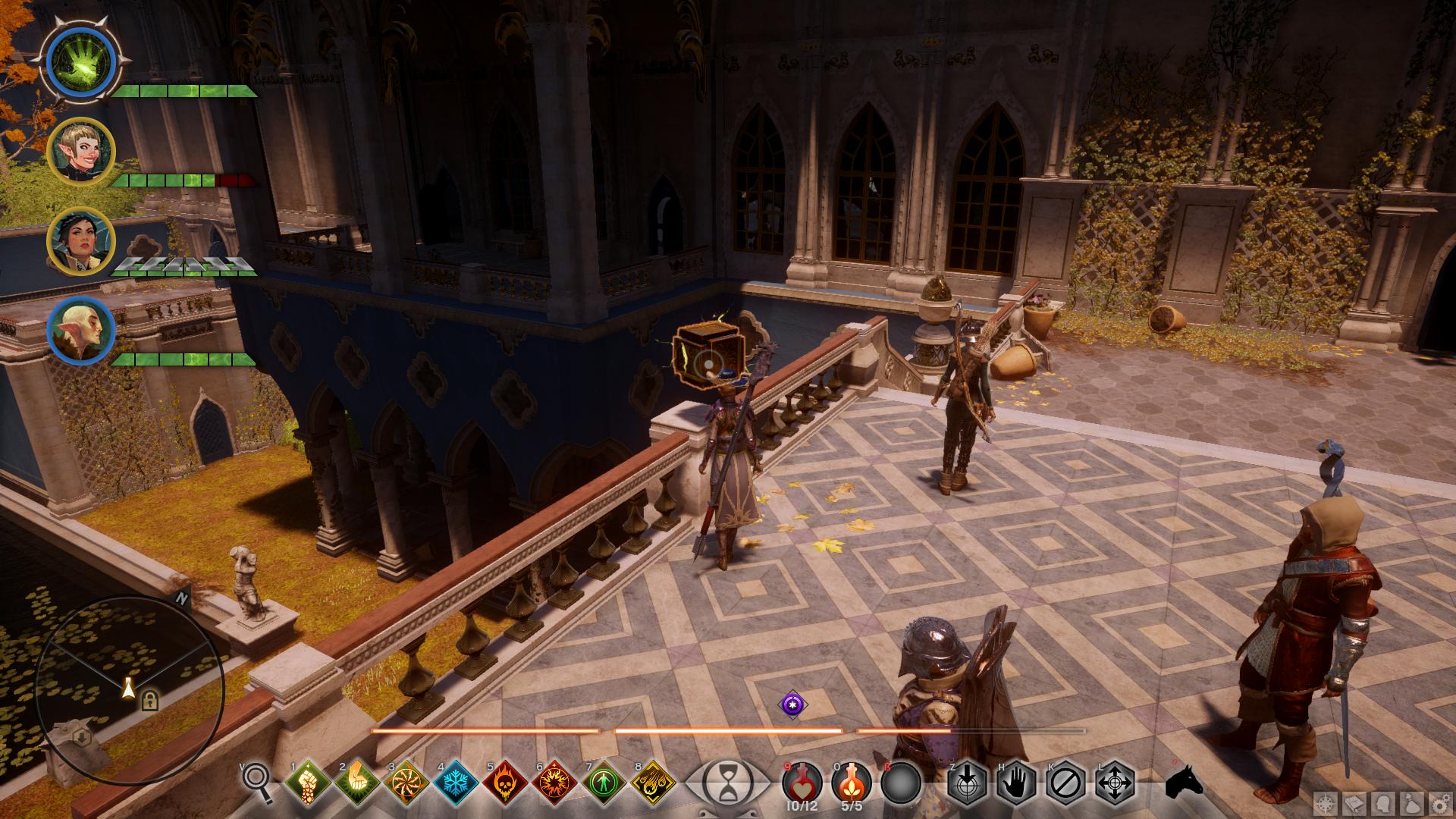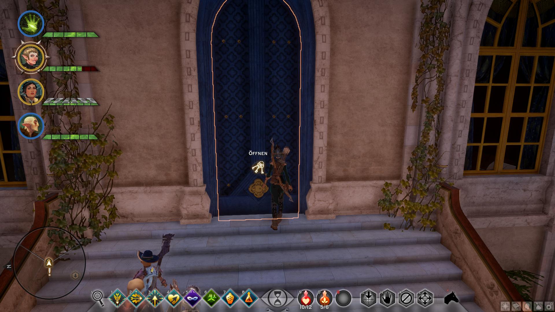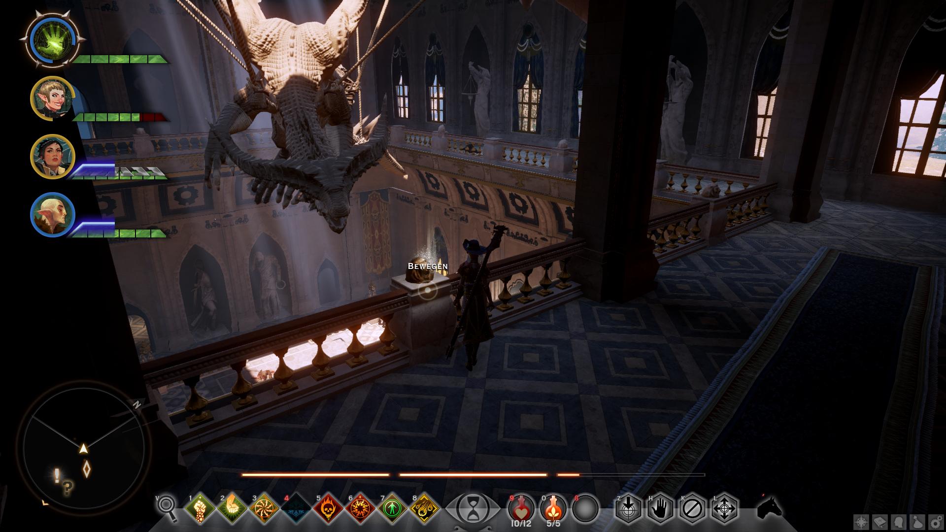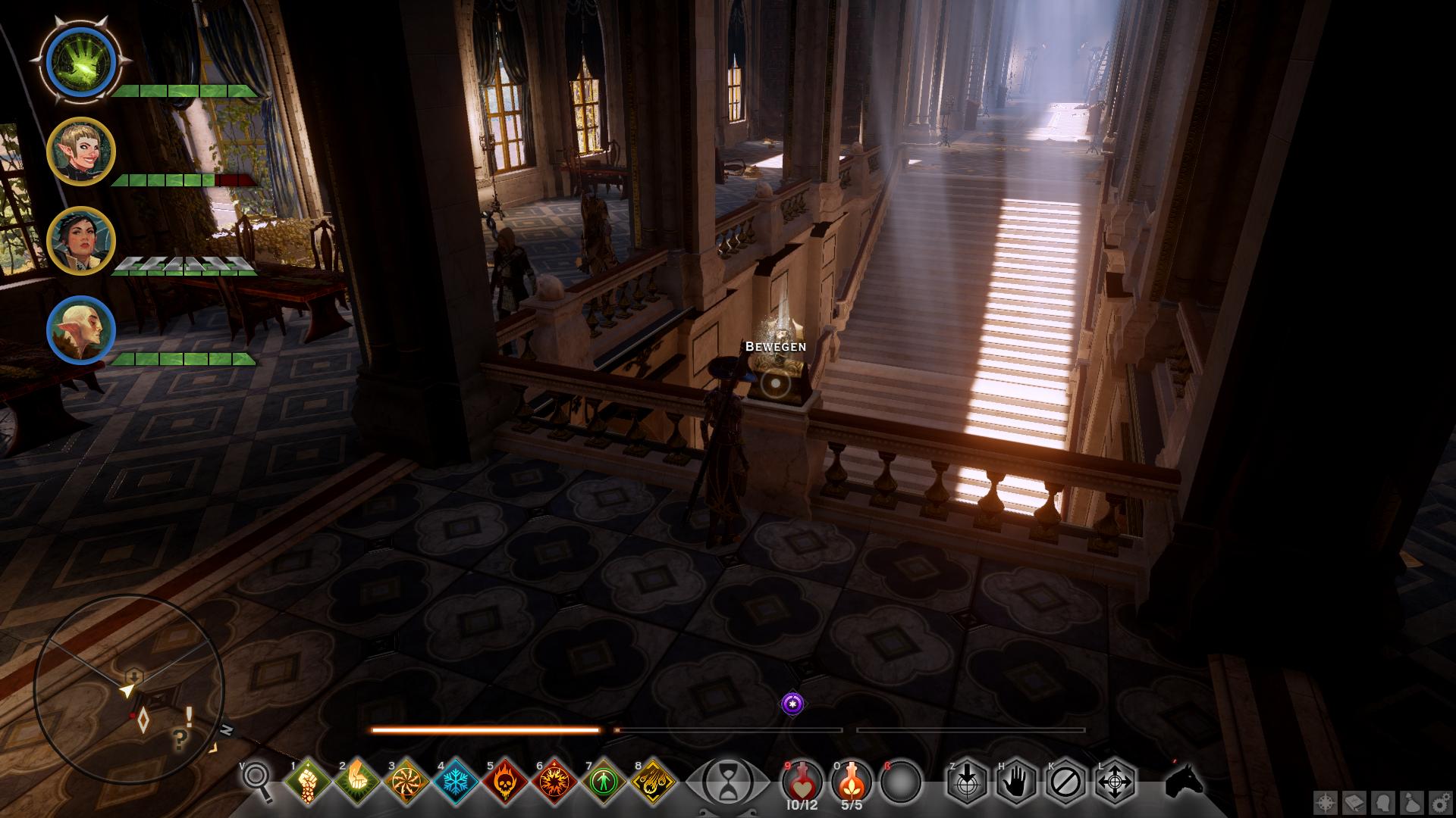 Falls ihr einen Schurken mit dem "Geschickte Hände, gute Werkzeuge" Inquisitionsbonus habt, dann öffnet zunächst die Tür zur Schatzkammer hinten auf dem Balkon. Darin findet ihr neben Ausrüstung ein zweites Mosaikteil. Klickt anschließend das grün leuchtende Kästchen auf dem Balkon [6] an. Es gewährt euch einen Klugheit +10 Bonus und beschwört den Endgegner des Chateaus: einen Arkanen Schrecken. Springt über die Balkone in zwei Schritten runter in den Hof [1] und erledigt ihn sowie die restlichen Untoten dort. Aus den Überresten des Arkanen Schreckens könnt ihr letztlich ein Amulett der Macht für Cole und anderen Schmuck plündern. Damit ist die Quest abgeschlossen und ihr habt alles wichtige im Chateau gefunden.