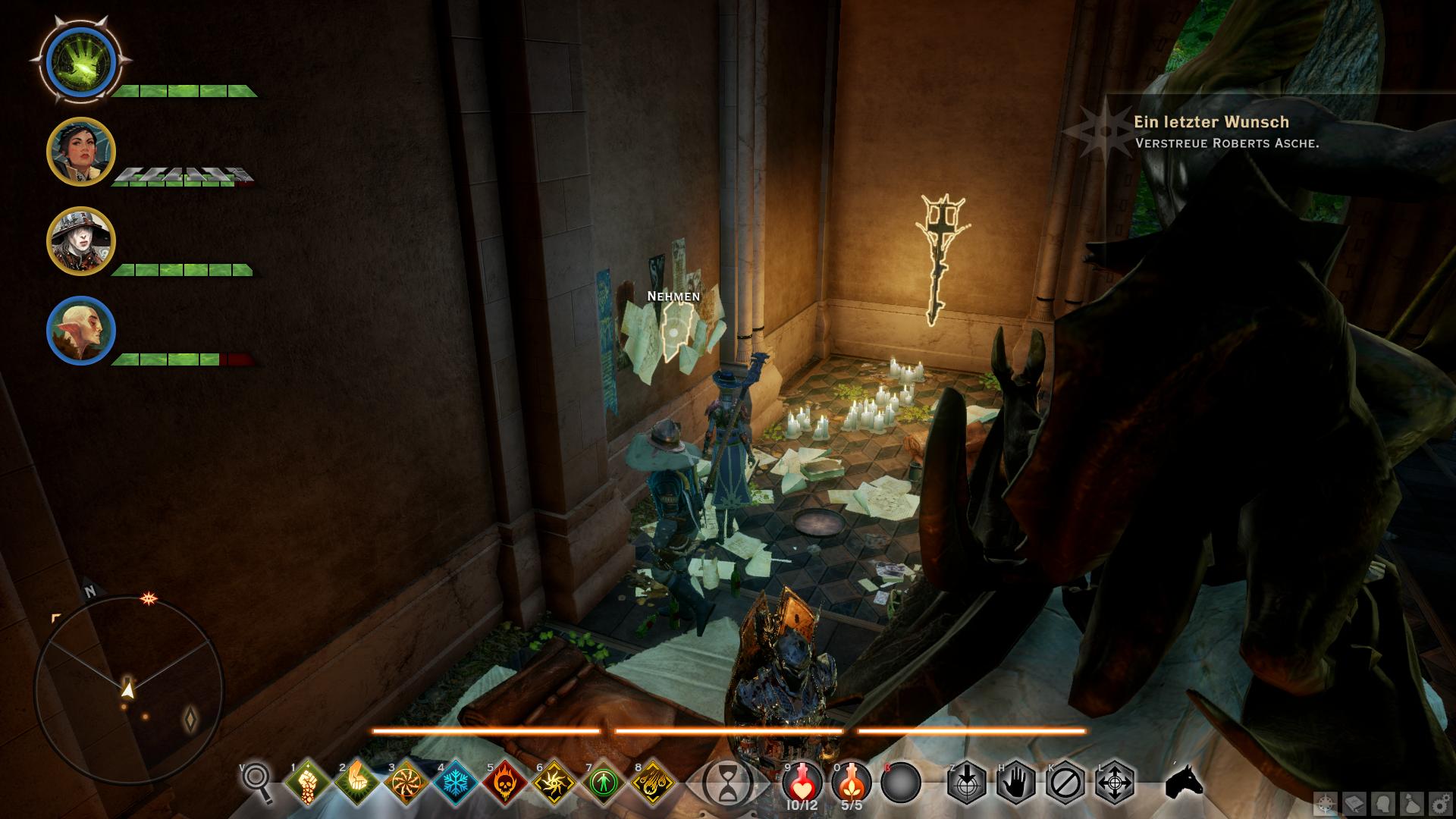 An der Wand hinter der Statue des Löwenpavilons [7] heftet eine Notiz, welche diese Quest startet. Der Treffpunkt des Liebespaares [4] liegt gleich nördlich des Huldreb-Lagers der Inquisition. Untersucht ihr die Picknickdecke der Liebenden, könnt ihr erahnen wo sie geblieben sind. Eine Riesenspinne lässt sich von den Bäumen herab, in deren Überresten ihr nach dem Kampf den Ehering finden könnt.