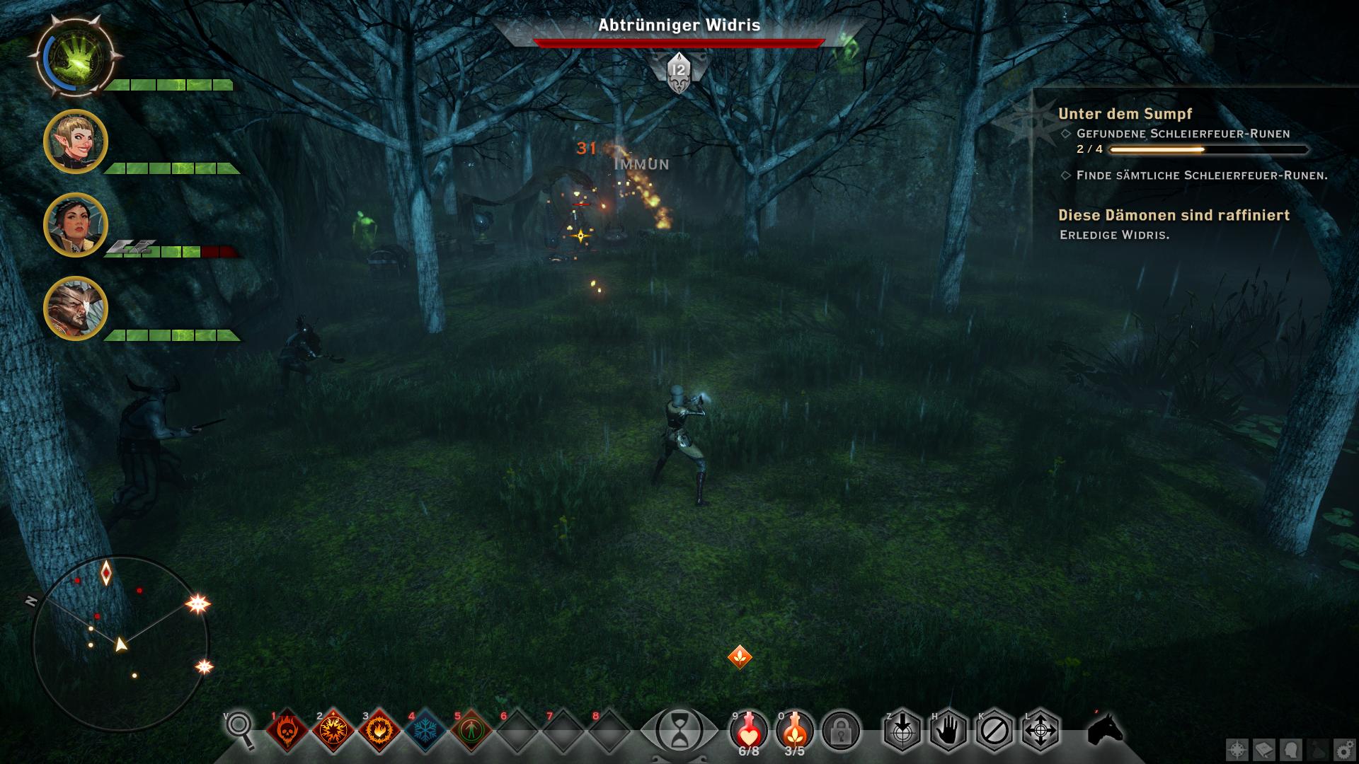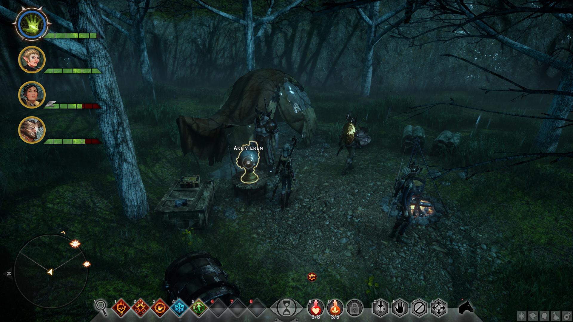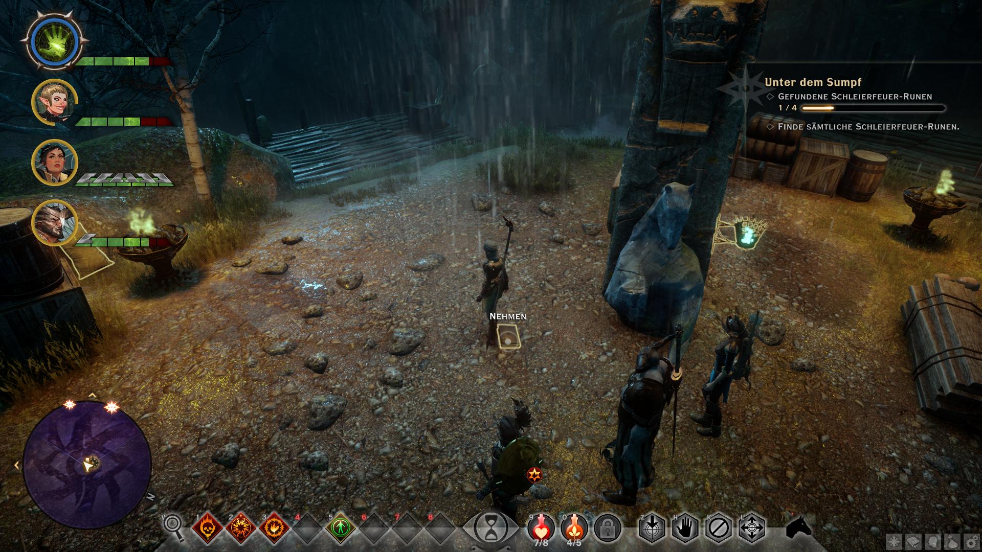 Am Fuße der zweiten Leuchtfeuer-Säule liegt ein Buch, welches diese Quest startet. Reist für diese zum Steinkreis beim zweiten Riss im Nordwesten. Dieser hat drei Durchgänge. Durch den im Osten habt ihr den Steinkreis vermutlich betreten und durch den Gang im Westen gelangt ihr zu einem kleinen Tümpel. Durchquert den Tümpel in Richtung Nordosten und ihr gelangt zum Abtrünnigen Widris und einigen Schemen. Aus seinen Überresten könnt ihr eine Kampfmagier-Rüstung der Wächter bergen und in seinem Lager eines von Solas Schleiergeräten aktivieren.
