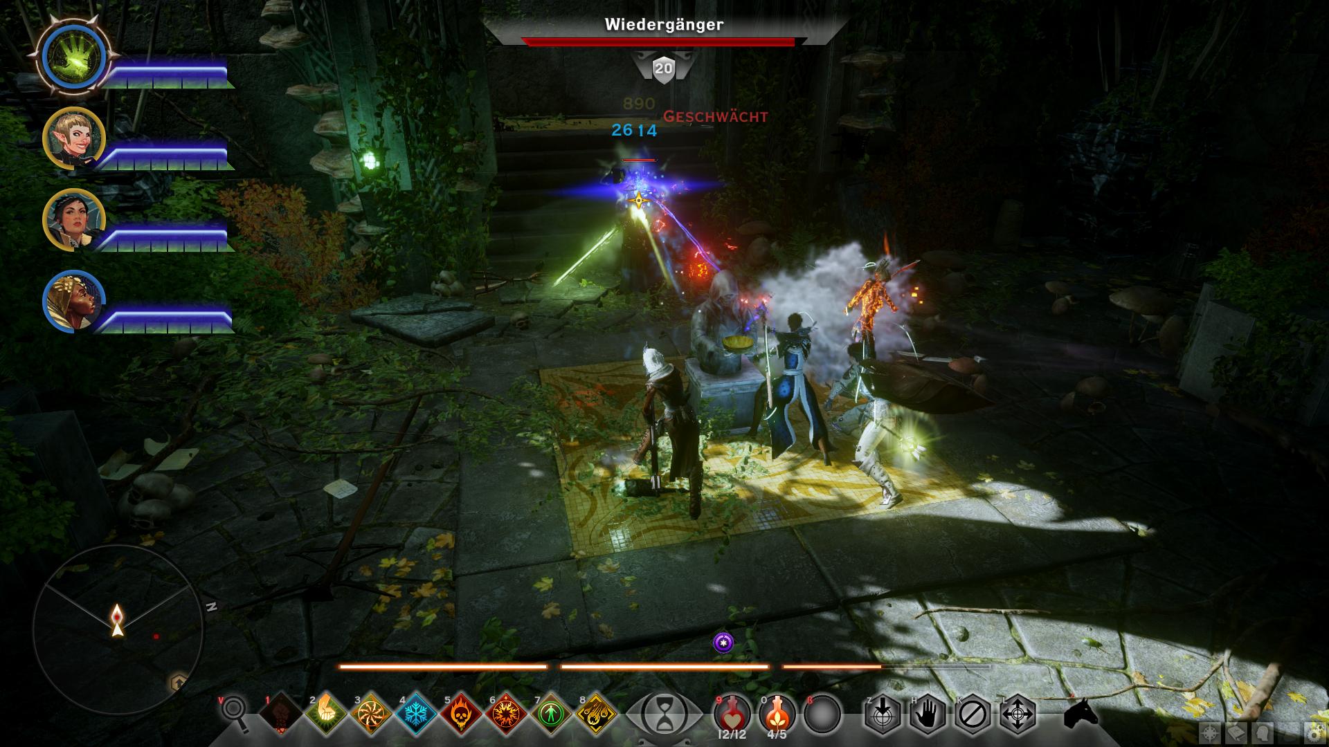 In der Wiege angelangt, müsst ihr vier Altäre [1, 2, 3, 4] mit Schleierfeuer untersuchen. Jedes Mal wenn ihr die Untersuchung durchführt, entsteht ein Runenkreis am Boden und ein Wiedergänger (Stufe 20) wird in der Nähe beschworen. Bezwingt ihr diesen, erhaltet ihr jeweils eins der vier Teile der sagenumwobenen Sulevin-Klinge. Eine Schleierfeuer-Quelle befindet sich immer wenige Meter nahe des Altars. Lediglich auf der untersten Ebene (Zuflucht der Toten), müsst ihr eine Fackel von der Treppe davor mitbringen. Entzündet damit zunächst die zwei Fackeln an dem Steinklotz am Kellereingang. Das entfacht sämtliche Schleierfeuer auf der Kellerebene. Anschließend könnt ihr euch wie gewohnt dem Wiedergänger widmen.