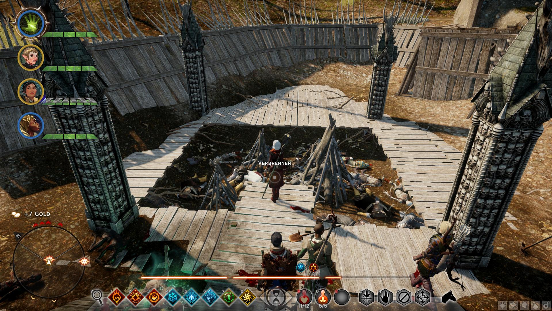 In den Gruben stapeln sich die Leichen, wodurch Geister angelockt werden, und sich die Untoten erheben. Als wäre das nicht schon genug, sind die Gruben außerdem von magischen Barrieren geschützt, die verhindern, dass jemand die Toten erreicht, um ihre sterblichen Überreste zu verbrennen. Sobald sämtliche Leichen verbrannt sind, soll ein Hornsignal gegeben werden, um Gaspards Truppen wissen zu lassen, dass die Untoten keine Gefahr mehr für die Wälle darstellen.