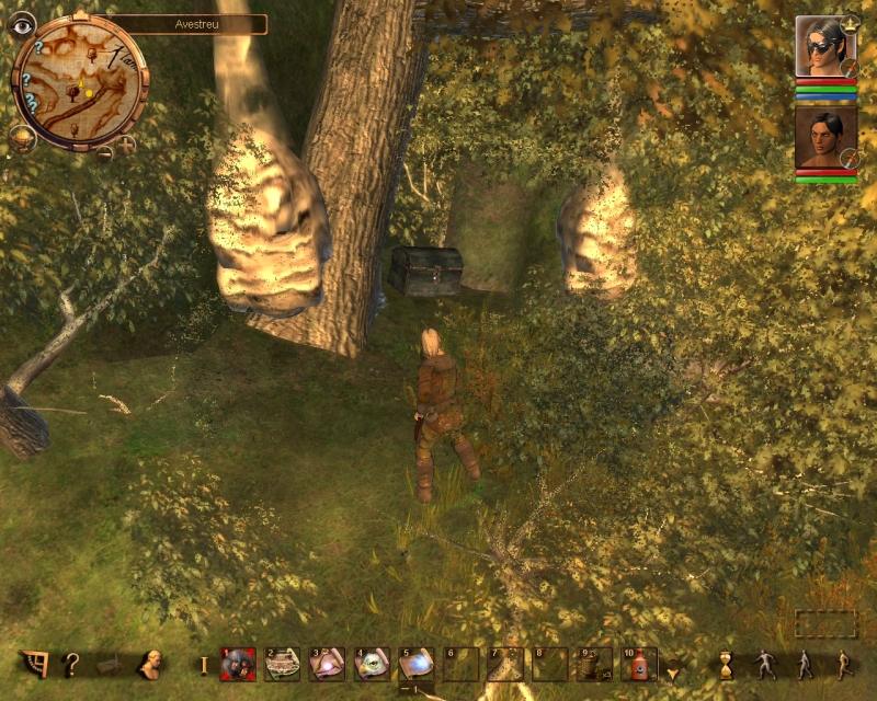 Beim Avesschrein befindet sich eine Schatzkiste, dessen Inhalt man sich "aneignen" soll. Dazu benötigt man natürlich das Talent "Schlösser knacken". Wenn man selbst dazu nicht in der Lage ist, benötigt man dazu Dranors Hilfe. Man begibt sich also zum Schrein und öffnet mit einer Haarnadel die Kiste. Im Inneren findet man einen Zettel. Jedoch wird man feststellen, dass nur unverständliches Kauderwelsch darauf zu entziffern ist.
