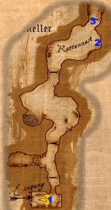 In der letzten Kammer des Kellers angelangt, findet man schließlich die gesuchte Kiste. Nähert man sich ihr, wird man jedoch von mehreren Wolfsratten angegriffen. Nachdem die Rattenplage beseitigt wurde, schickt man am Besten eine Dieb (Dranor) vor, um die Falle, mit der die Kiste gesichert ist, zu entschärfen. Das Kiste lässt sich mithilfe des Schlüssels aus dem Hühnerhaus öffnen und in ihr befindet sich der dritte Hinweis der Diebesgilde.