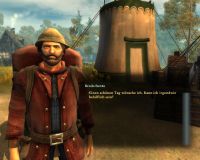 Im "Gastgarten" des Wirtshauses zum "Scharfen Schwert" findet man den verschlagenen Händler Gallo Frantrich. Dieser offenbart uns, dass er ein Päckchen verloren hat und bittet uns danach zu suchen. Dummerweise hat er keine Ahnung wo er es verloren hat.