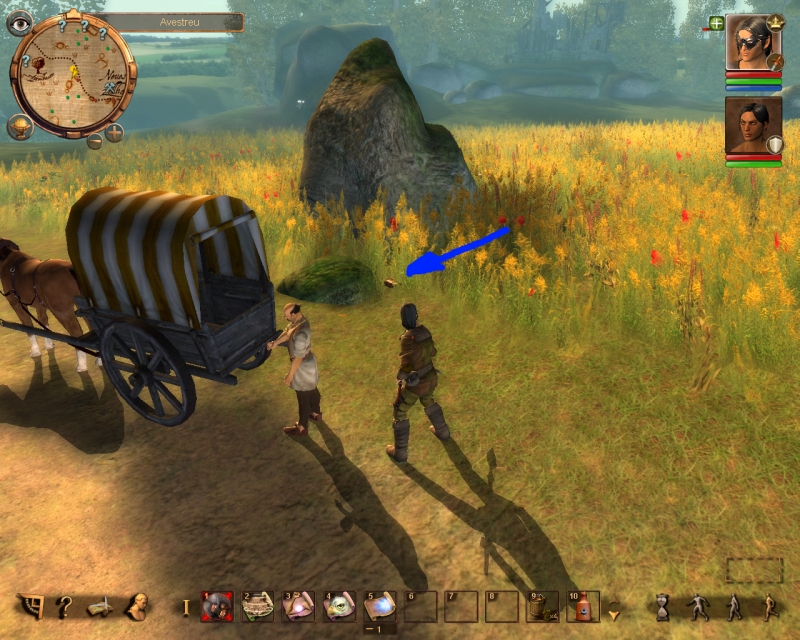 Hinter der Brücke von Avestreu trifft man auf Grantel Ackerboldt und Berwin Rübenfein, die sich einen heftigen nachbarschaftlichen Streit liefern. Grantel ist offenbar wild entschlossen Rübenfeins Apfelbaum zu fällen, was diesem natürlich sehr missfällt.