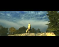 Machen wir uns also von der Hütte aus auf den Weg in den nordwestlich gelegenen Teil des Waldes. Unterwegs wird man immer wieder von kleineren Gruppen Wölfen angegriffen, bis man schließlich zu einem Felsmassiv kommt. (23) Dort angekommen stellt sich die Alphawölfin Weißfell sogleich mit lautem Geheul vor und kommt schließlich zum Angriff angestürmt, mit zwei weiteren Wölfen im Schlepptau. Wir ziehen der Wölfin das Fell über die Ohren und machen uns mit dem Fell im Gepäck (wird nach dem Tod der Wölfin automatisch dem Inventar hinzugefügt) wieder auf dem Weg zum Jäger Kauzenstein. Dieser nimmt das weiße Fell dankend an und belohnt uns mit 20 Silbertaler. |