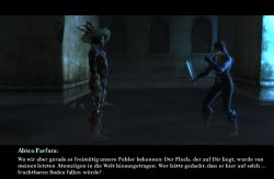 Im Inneren der Gruft treffen wir auf Thalyas ehemaligen Komplizen Alrico Farfara, dem die letzten Jahre in der Gruft nicht so gut bekommen zu haben scheinen. Im Glauben, dass Alrico tot sei, hat sie ihn damals lebendig in der Gruft eingeschlossen, weshalb der Untote nun nicht mehr besonders gut auf Thalya zu sprechen ist. In seinen letzten Atemzügen als Lebendiger hat er damals Thalya verflucht und konnte seitdem selbst keine Ruhe mehr finden.