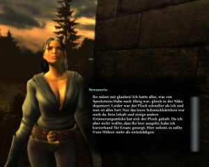 Im Moorbrücker Wirtshaus werden wir gleich von Schotterbier in Empfang genommen, der uns berichtet, dass er von Thalya ausgeraubt wurde. Danach soll die Streunerin in Richtung der alten Mühle geflohen sein. Da wir ebenfalls noch eine Kleinigkeit mit Thalya zu klären haben, machen wir uns auf die Suche nach ihrem Versteck.