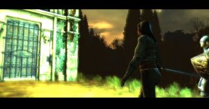 Mit Thalya im Schlepptau machen wir uns auf den Rückweg in die Sümpfe und begeben uns zur südwestlichen Halbinsel. Wenn wir die hintere der beiden Grüfte (18) erreichen, erklärt uns Thalya, dass wir am Ziel angelangt sind. Diese Gruft hat sie damals nach ihrer überstürzten Flucht zur Sicherheit verschlossen, um die dort hausenden Kreaturen einzusperren. Sobald wir uns bereit erklären der Ursache für die verfluchte Halskette auf den Grund zu gehen, öffnet Thalya die Gruft und wir betreten das Innere des alten Gemäuers.