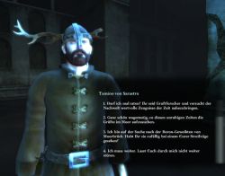 Wir erfahren, dass sie im Auftrag des Nekromanten Morlinde einsperrten und natürlich auch noch in welche der Grüfte. Auch können wir in Erfahrung bringen, dass die beiden den Büttel in der Nähe des Nekromanten sahen, er muss also mit ihm im Bunde stehen. Außerdem kann man ihnen den erbeuteten Grabschmuck abschwätzen.